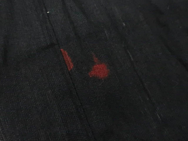 リサイクル商品のため、たたみしわと、背中心に赤い汚れ、左袖付けの糸ゆるみがございますが着用可能なお品です。 地色は 黒です。 1枚目の画像が近いお色かと思われます。 素材は綿です。 |