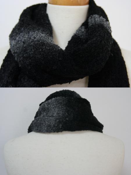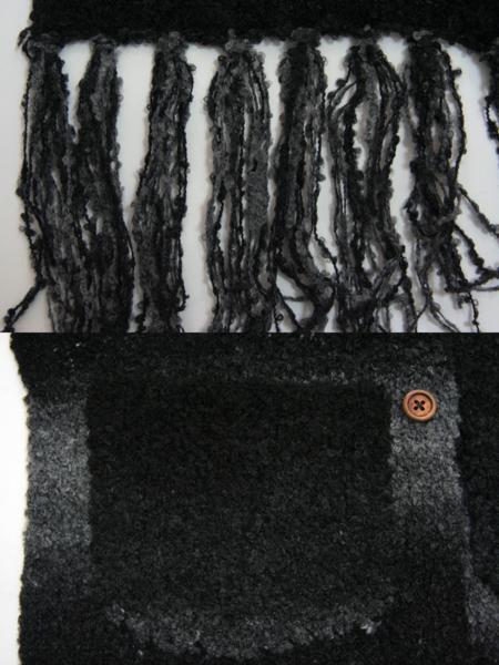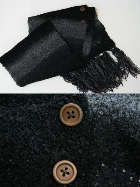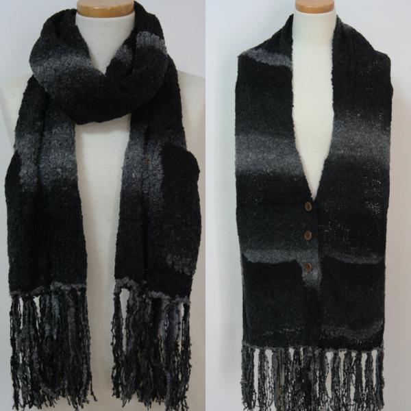 送料無料◆超お得◆2枚組◆2WAYタイプ◆マフラー&カーディガン風◆ボタン留め◆ポケット付き◆手編み◆グラデーションマフラー(ブラック)