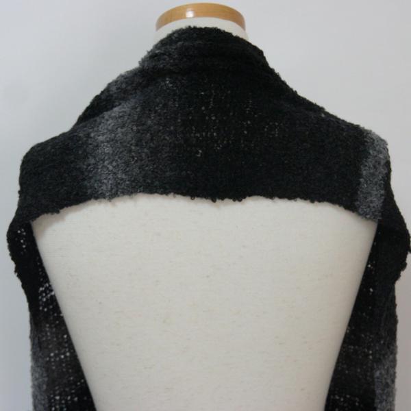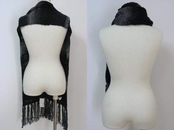 ・画像にてご覧いただけるように、①マフラーとしても②カーディガン風としてもお使いいただける、2WAYグラデーションマフラーです。