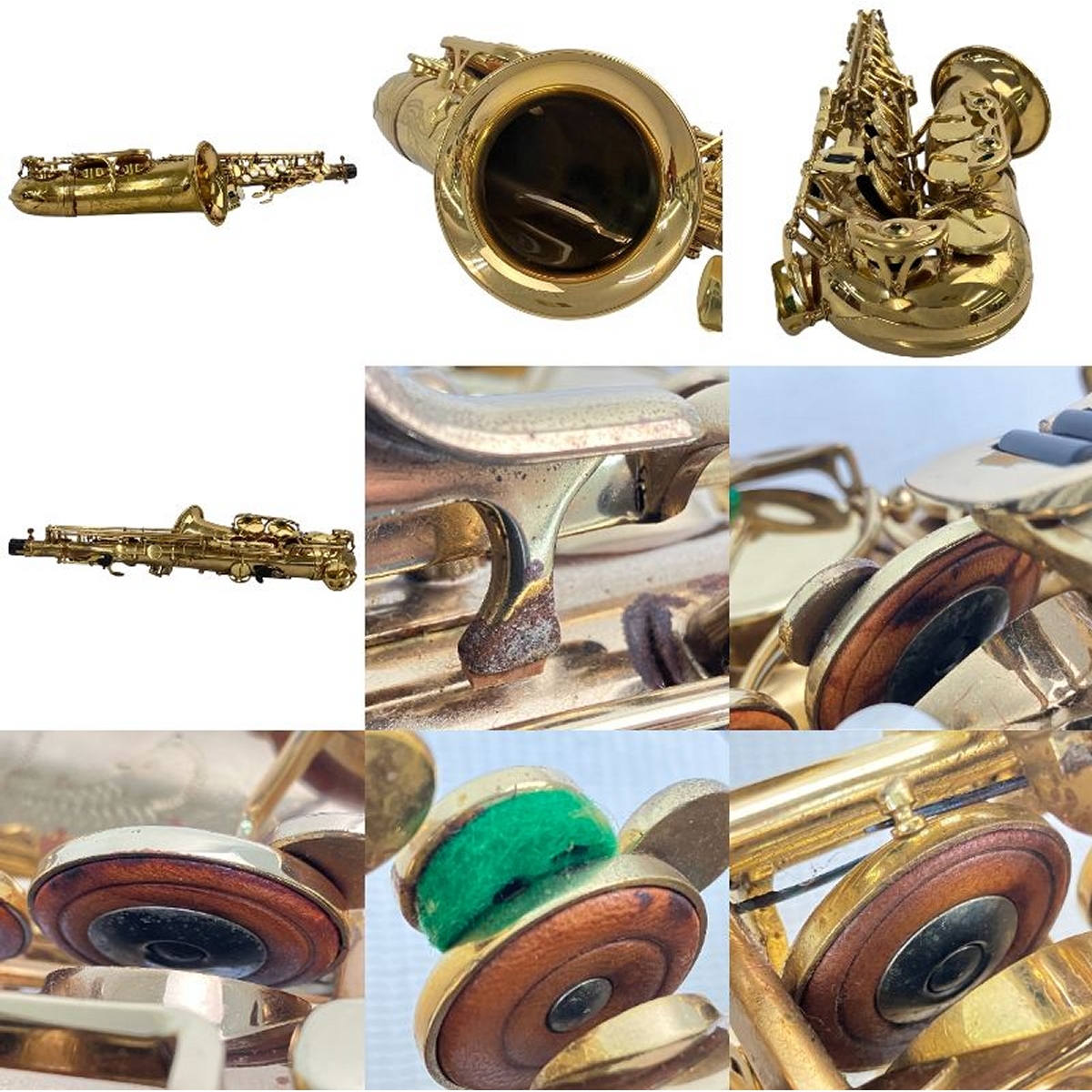 SELMER SA80 GL SERIE1 アルトサックス 1984年頃に製造された、セルマーSA80 GL SERIE1。深く美しい彫刻が施されたこのサックスは、セルマーの黄金期を支えたモデルであり、現在では希少な存在となっています。 この楽器の最大の魅力は、ヴィンテージ特有の、温かくも芯のある豊かな響きです。現行モデルにはない、図太く、艶やかな音色は、プレイヤーの感情をダイレクトに表現します。 本品はオーバーホールは施されていませんが、時間を経て育まれた、この個体だけが持つ唯一無二のサウンドをそのままお楽しみいただけます。調整を施せば、さらに素晴らしいパフォーマンスを発揮してくれるでしょう。 SELMERの歴史を今に伝える特別な一本。このサックスが奏でる、かけがえのない音色を、ぜひご自身の手に取ってお確かめください 【状態について】 長期にわたる使用や保管に伴ったサビ汚れが見受けられます。 多少の擦り傷、小さな打痕、ヘコミ、使用傷、サビなどが見受けられます。 安全なクリーナーにて簡易清掃を行ってお届けさせていただきます。 ※タンポは使用感がございますが破れはございません。 1984年頃に購入し、現在まで1回もオーバーホールを行っておりません。 そのため、ジャンク品として出品しております。 ご認識の上お買い求めください! 【動作について】 簡易的なキー操作を行いましたが、演奏に支障が出るほど大きなタンポの固着はございません。 【付属品】 ケース ※付属品に関しては画像にてご確認いただけるものが全てとなっております。 ※こちらの商品は、故障や破損、欠品、正常な動作のお約束ができない等、 様々な理由にて訳あり商品(ジャンク品)として販売をさせていただいております。 修理、パーツ取りなどを想定しお買い求め下さい。 上記の理由からお求め易い価格で出品しております! ※一部商品は在庫自動連携しているため、ご購入後に在庫がない場合がございます。 ご了承の上、ご購入くださいませ。 |