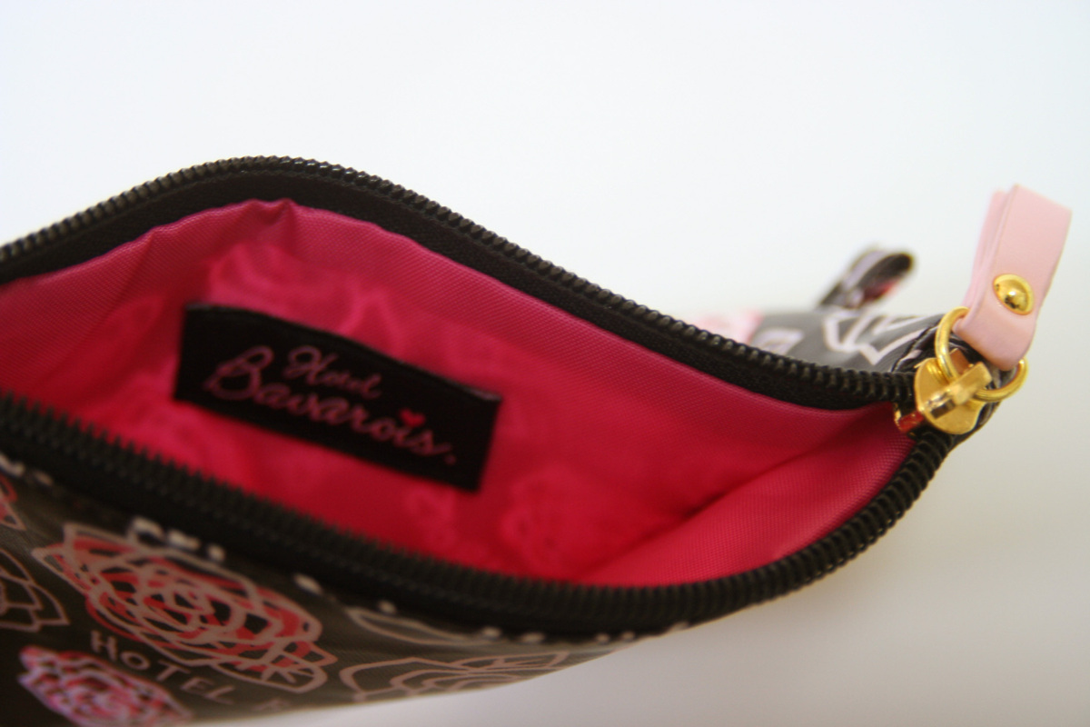 ・ポーチの大きさは、縦:約11.5cm×横:約17.5cmです。また、ポーチの入り口はジッパー式です。