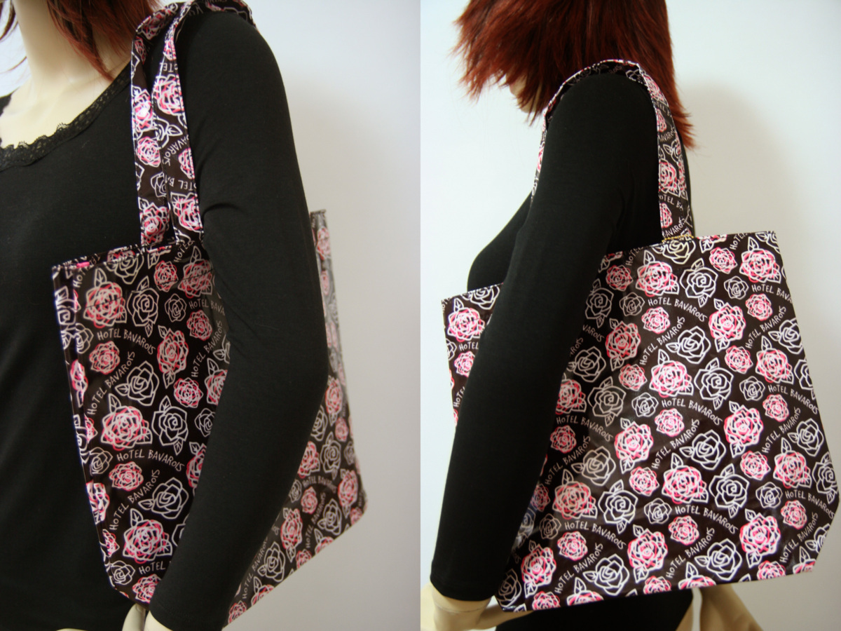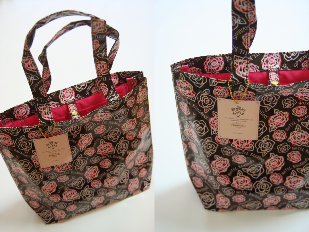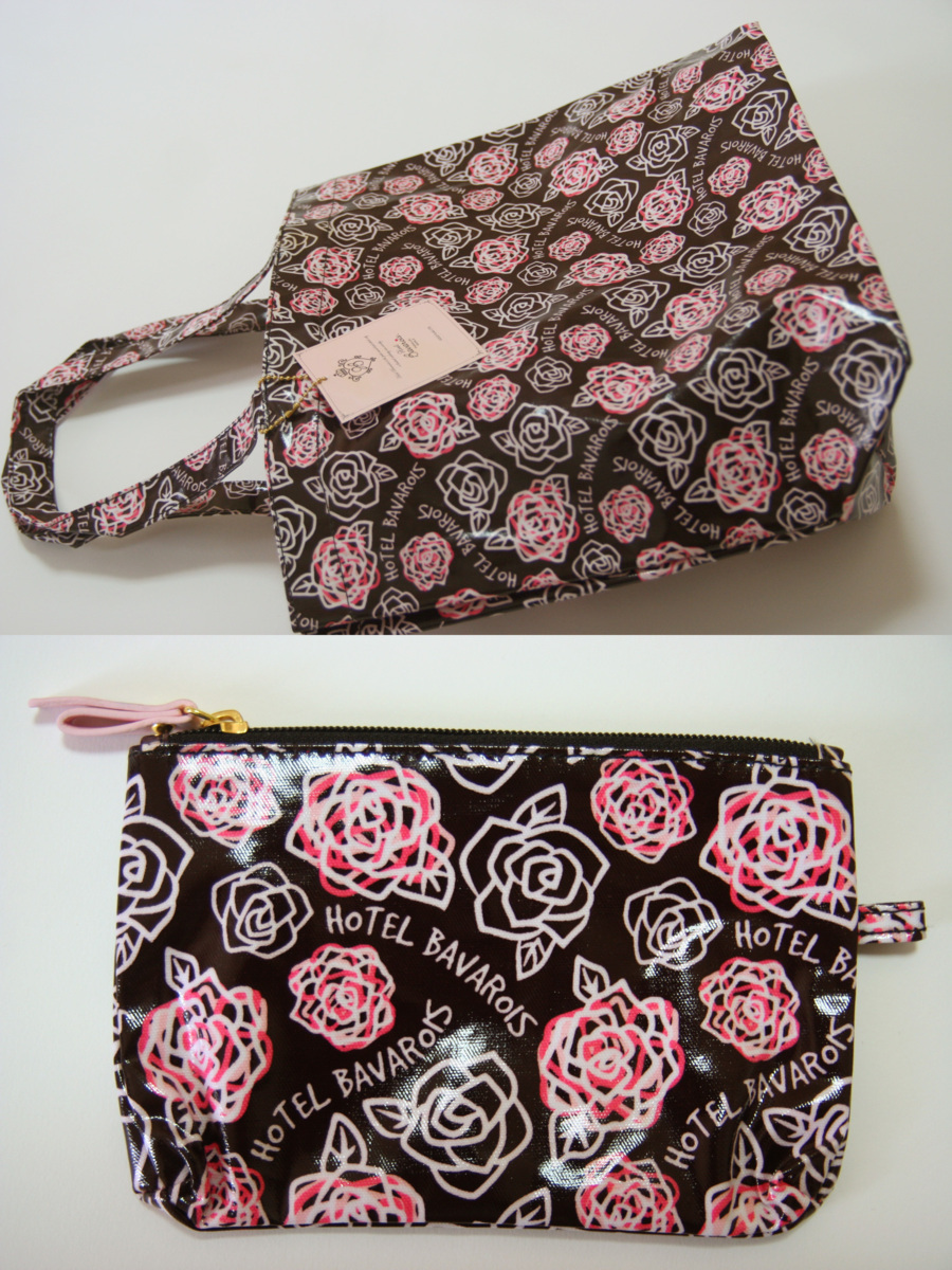 送料無料◆【Hotel Bavarois】(ホテル ババロア)◆光沢感◆撥水性◆バラ柄◆トートバッグ&ポーチセット(チョコブラウン)