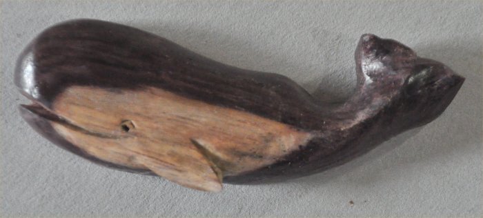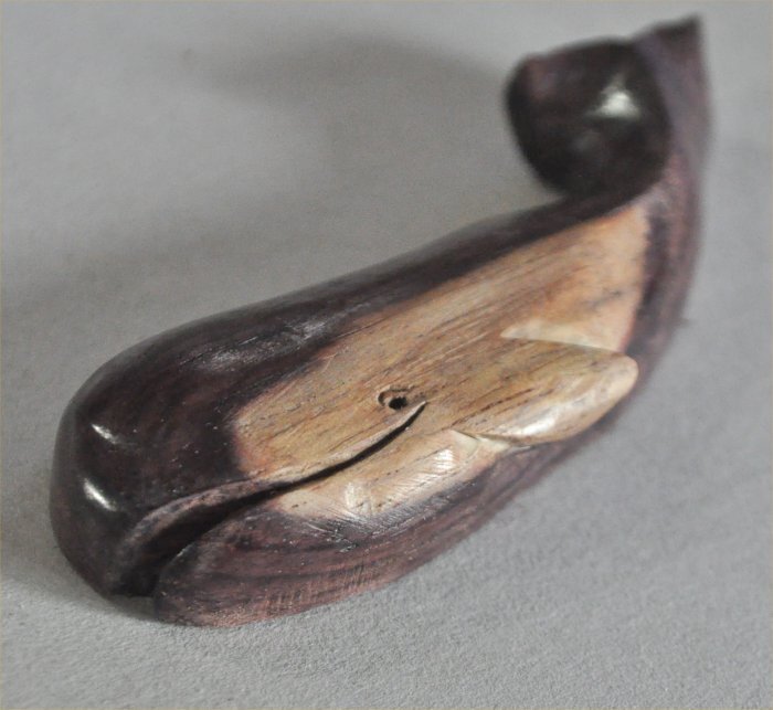 本紫檀の色変わり部分使用のクジラオーナメントサイズは、75mm×30mm厚み10mm磨き仕上げ素材本紫檀本紫檀の色変わり部分をくじらの模様にうまく利用したクジラオーナメントです。