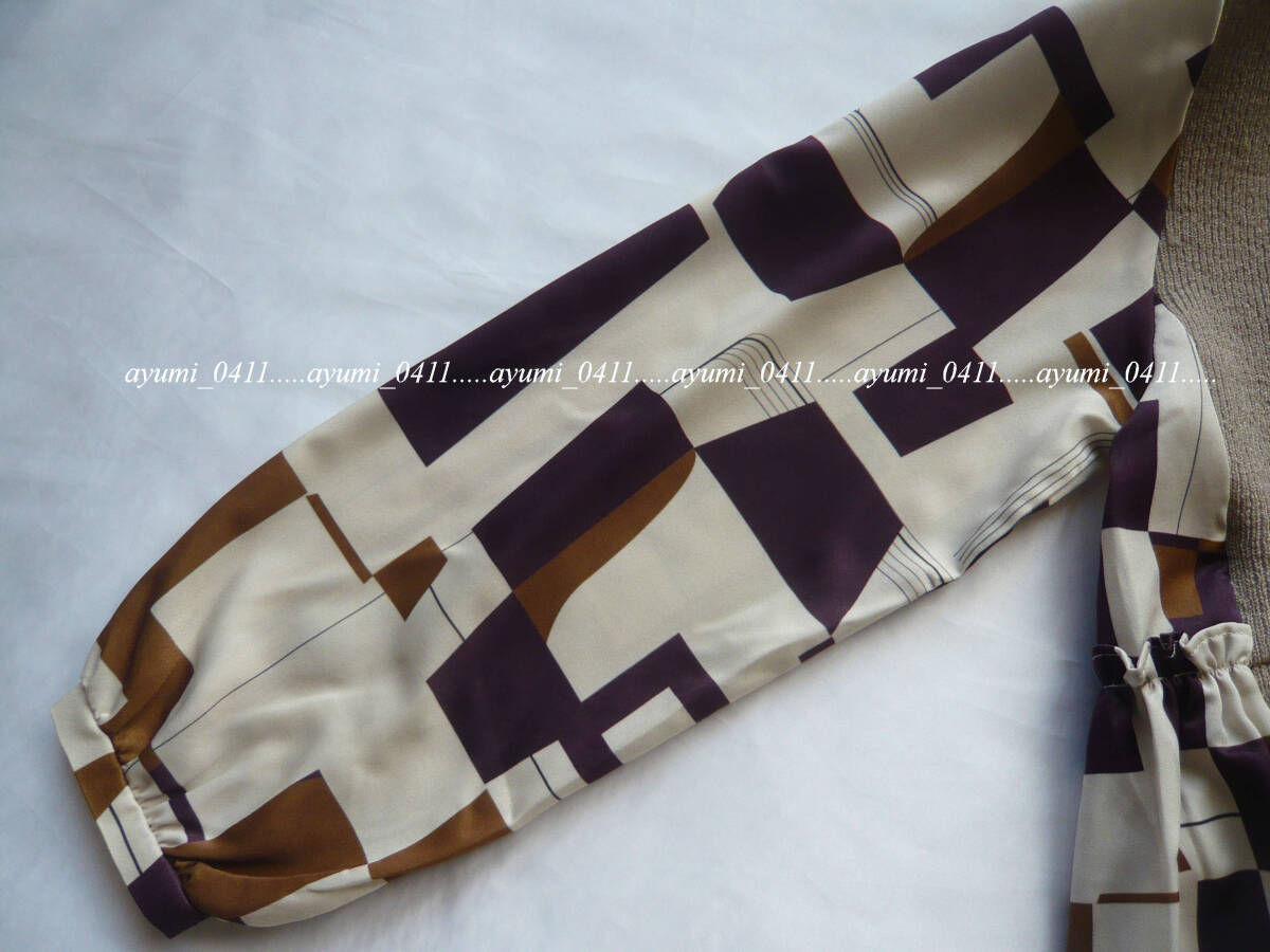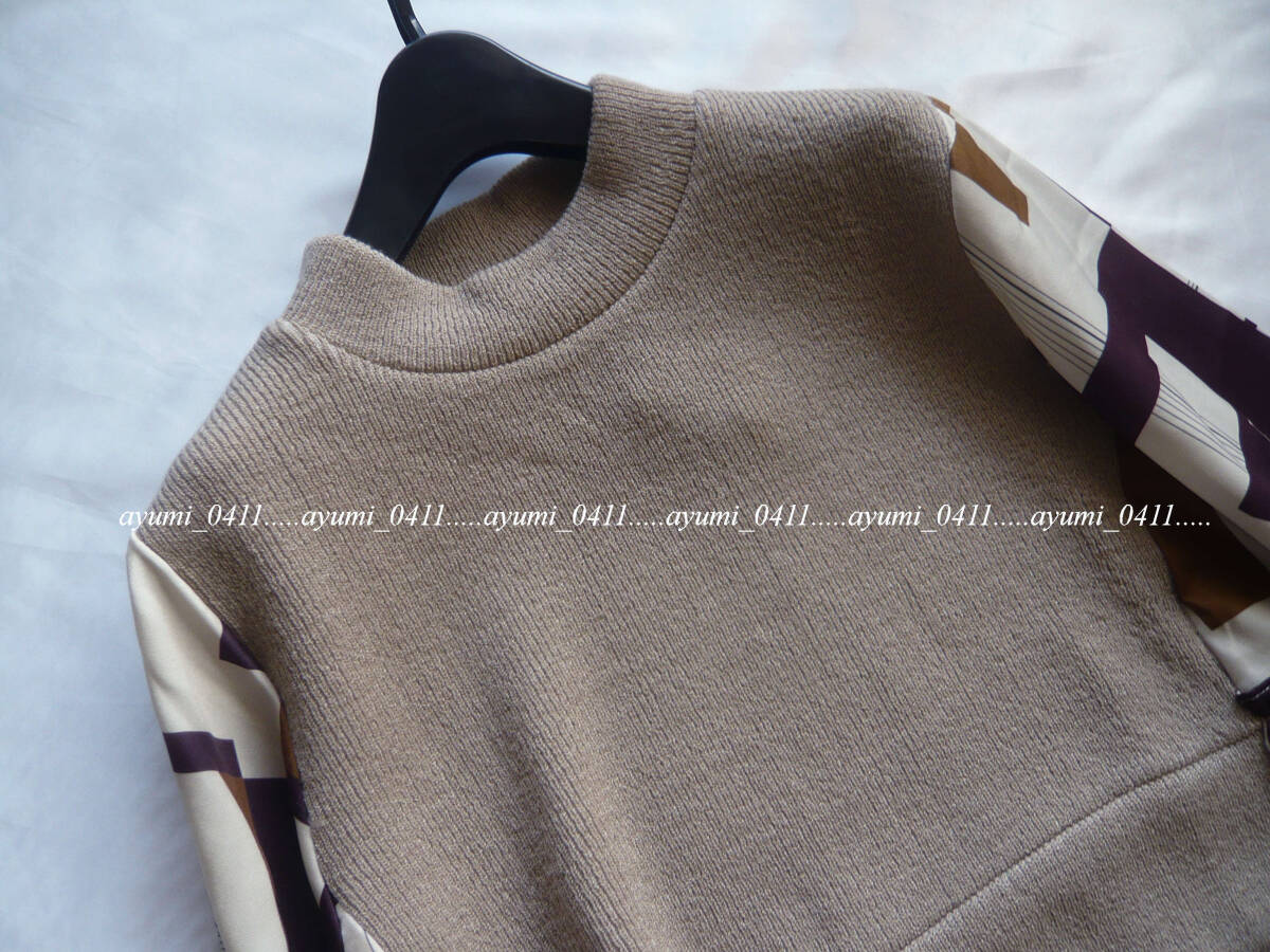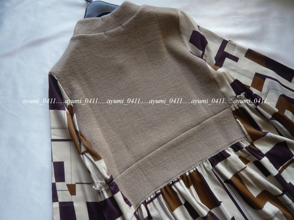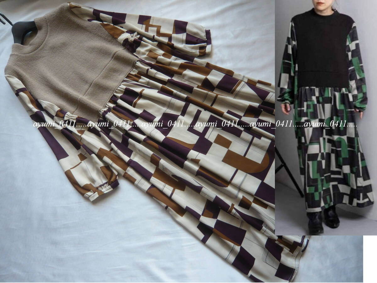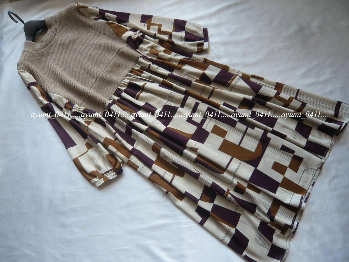 ★未使用★Eimee Law エイミーロウ/ベージュ系・ニット×幾何柄 ゆったり 異素材ドッキングワンピース/定価1.2万円/手洗い◎
