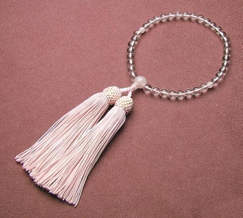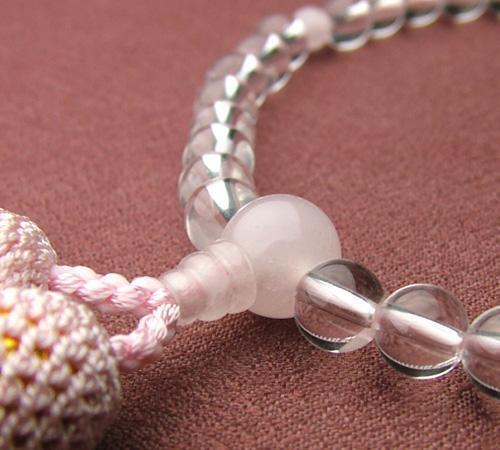 [ゆうパケットOK]水晶 ローズクウォーツ仕立 ピンク色房(正絹頭付)【念珠・数珠・女性】