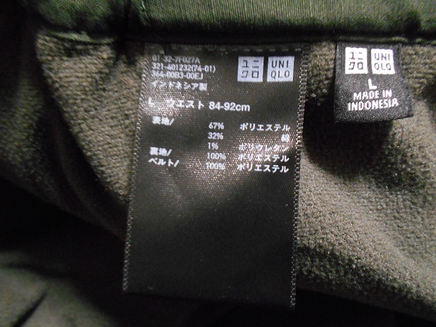 表地:ポリエステル67%、綿32%、ポリウレタン1%