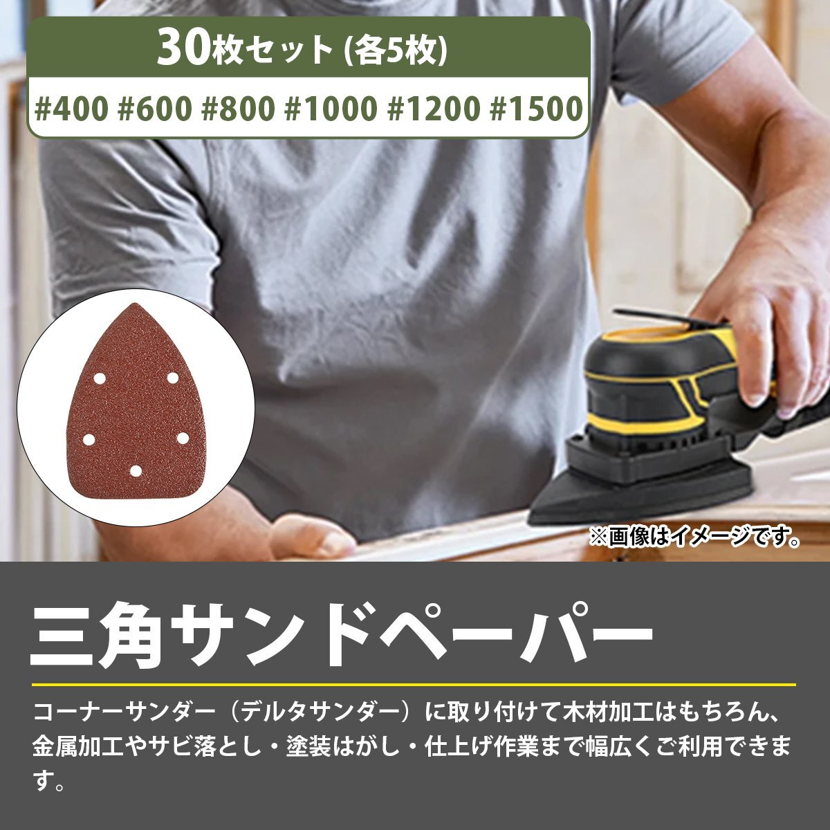細目 30枚セット コーナーサンダー 140㎜×90㎜ #400/600/800/1000/1200/1500 6種 各5枚 三角形 サンドペーパー 紙やすり