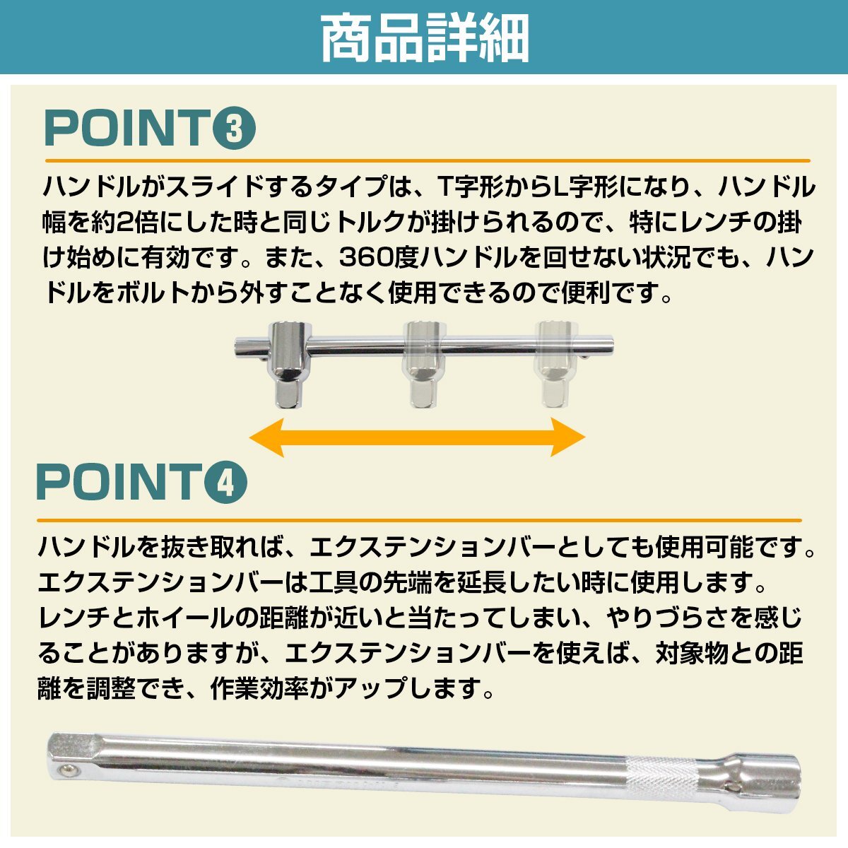 商 品 説 明T型スライドハンドルソケット 5点セット