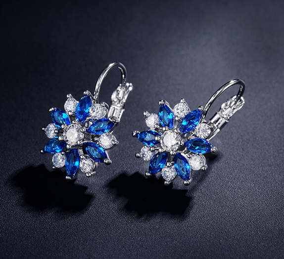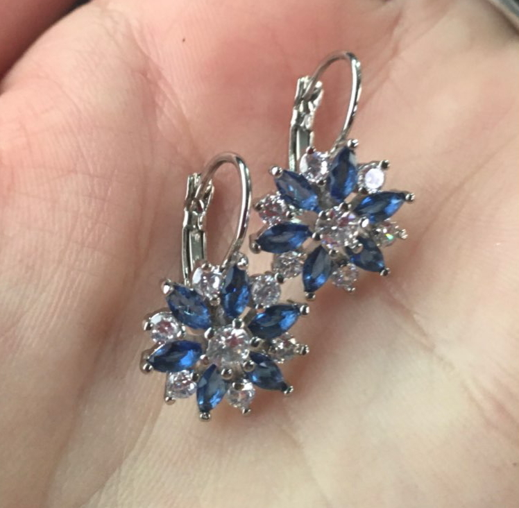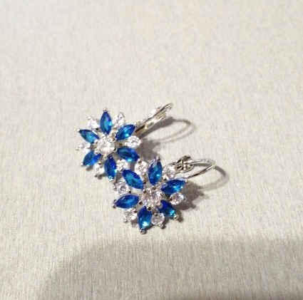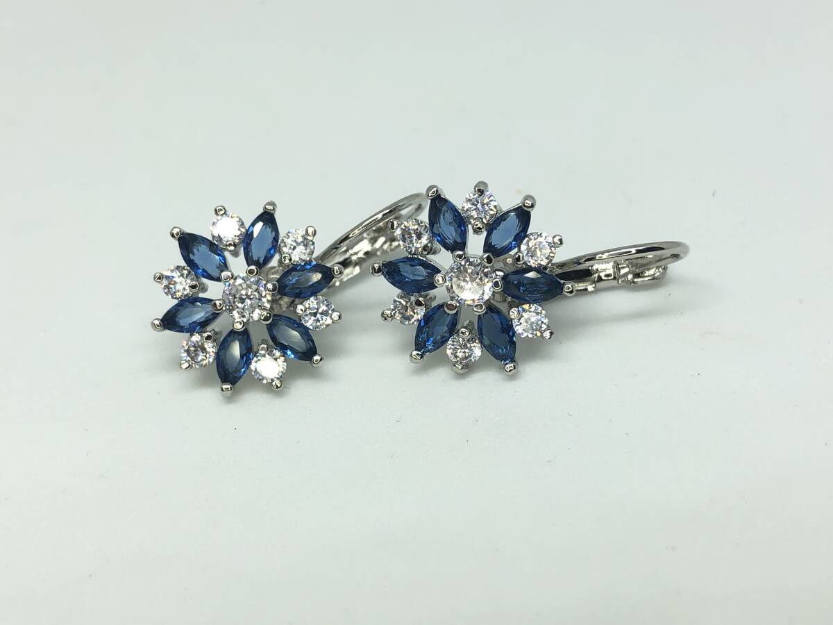 まるでブルーサファイア★AAAジルコニアダイヤモンド 花柄ピアス 両耳☆シルバー