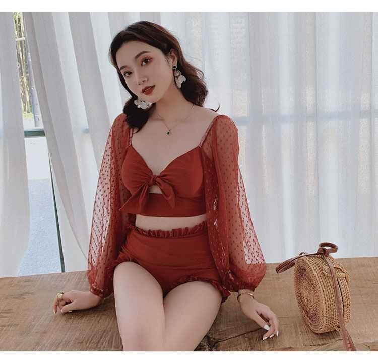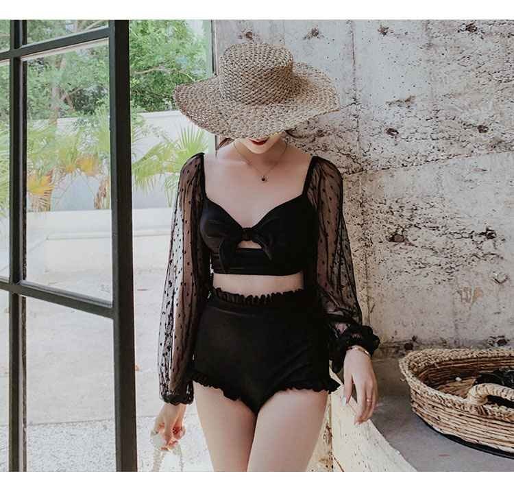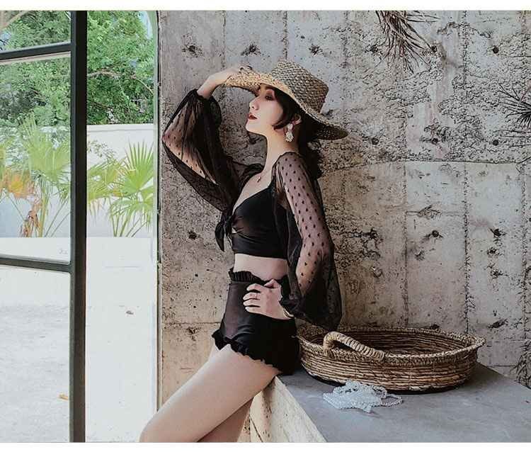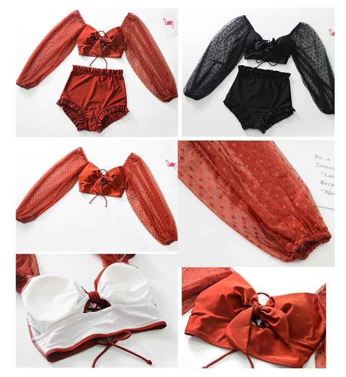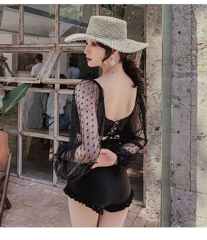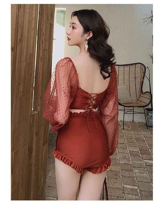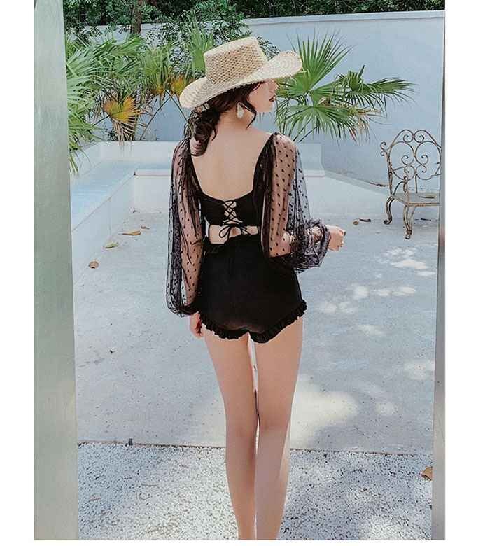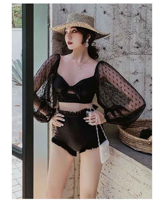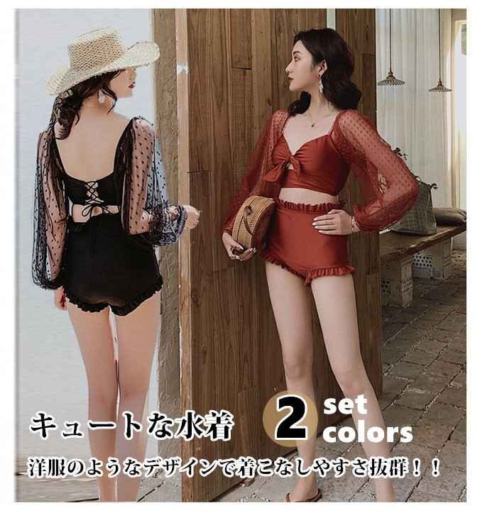 ハイウエストお腹をしっかり隠して気になる体型をカバー。また、柔らかい生地でふわふわ揺れる長袖のレースが涼しげな印象に与えられます!