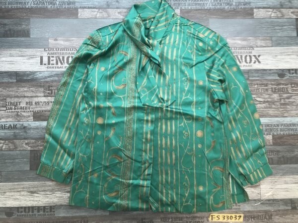 BRUNO PIATTELLI レディース 比翼ボタン ポリエステル スカーフ調 肩パッド入 ブラウス シャツ 緑 です。