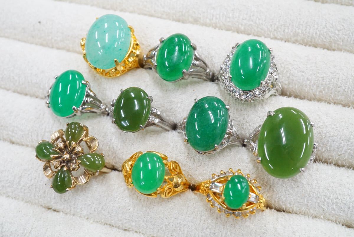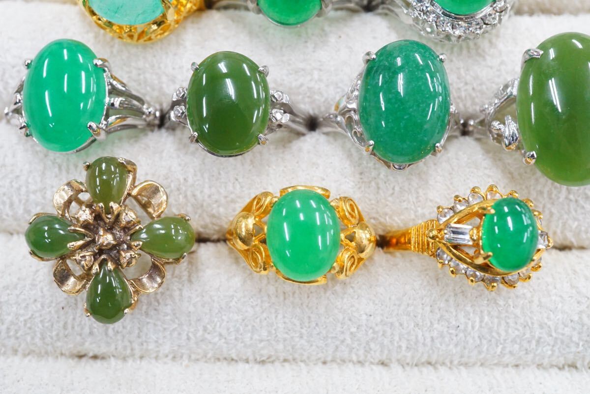 B433 緑石 天然石系 リング 指輪 カラーストーン ヴィンテージ アクセサリー 大量 セット まとめて おまとめ まとめ売り