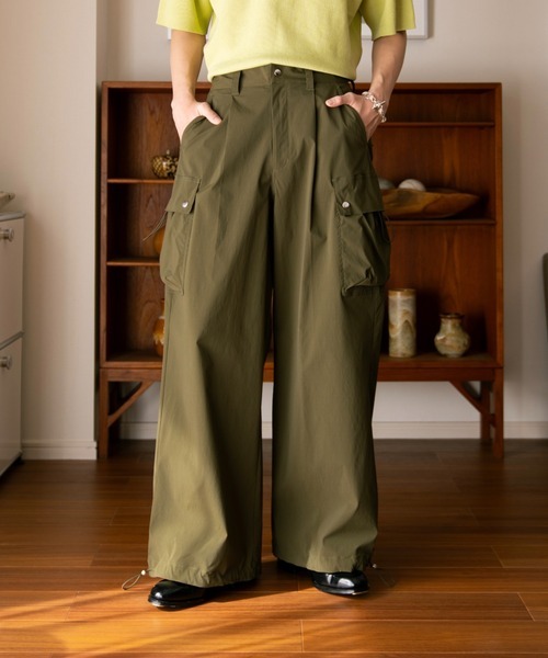 参考商品名:Wide straight tech cargo pants (Washer nylon)/ワイドストレートテックカーゴパンツ(ワッシャーナイロン)