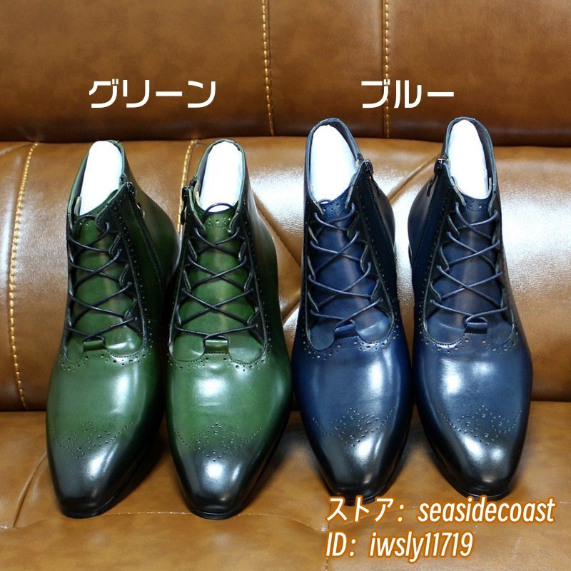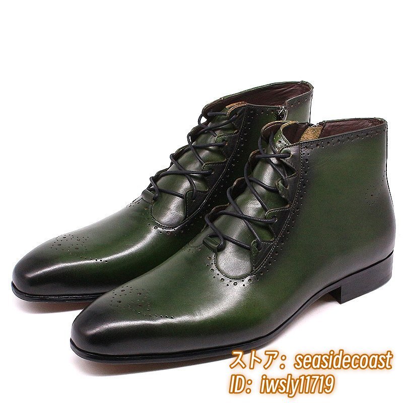 最上級★マーティンブーツ 牛革 エンジニアブーツ 大人気 本革 レザーブーツ 職人手作り 皮靴 ハイカット ショートブーツ グリーン 24.5cm