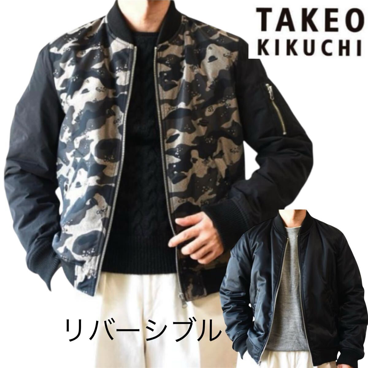 こちらは、リバーシブル■タケオキクチ■ハット カモフラ MA-1ブルゾン ジャケット 3 L ブラック オリーブ ブロンズ フライトジャケット ミリタリー TAKEO KIKUCHI