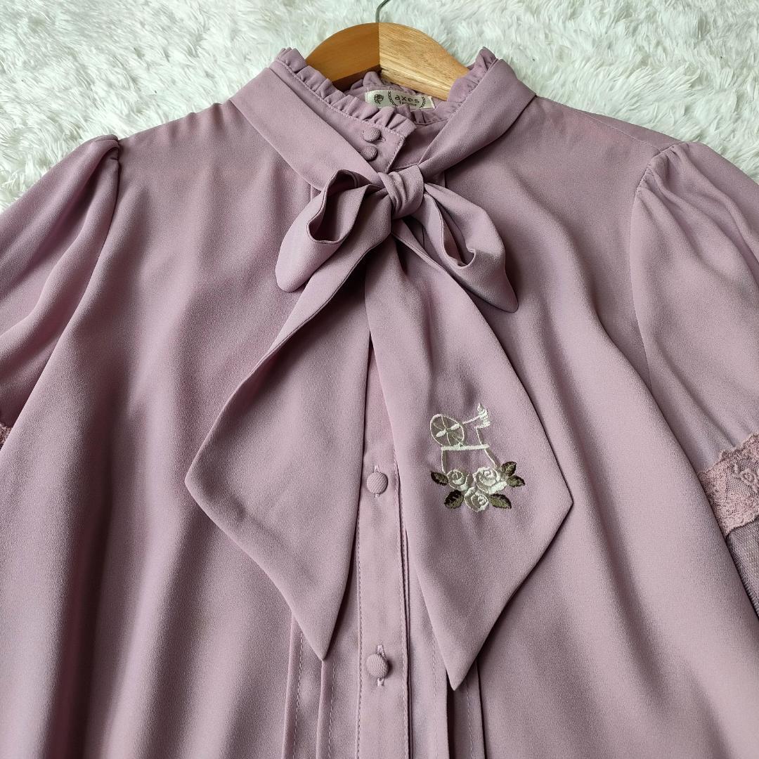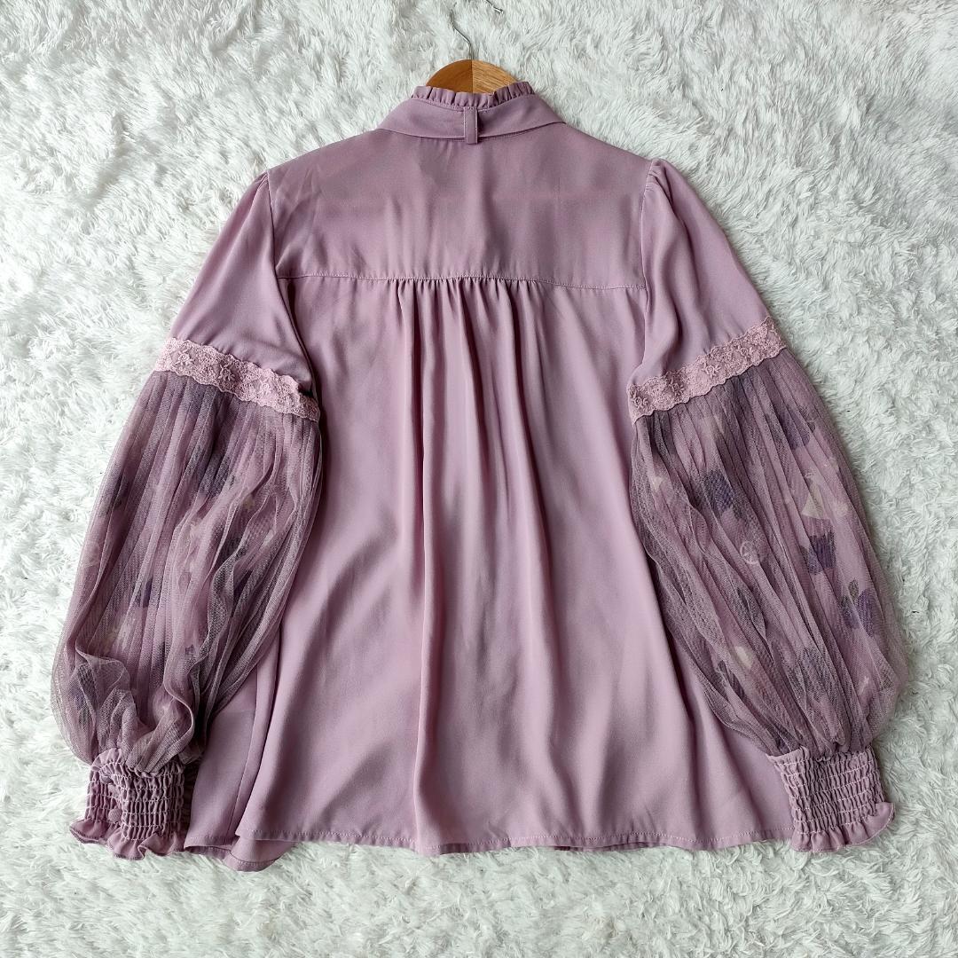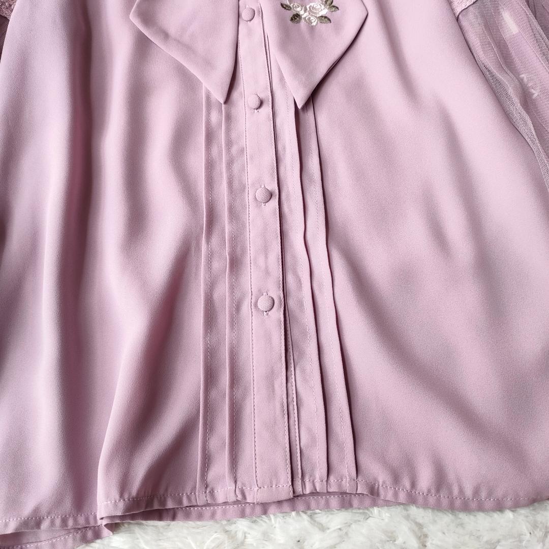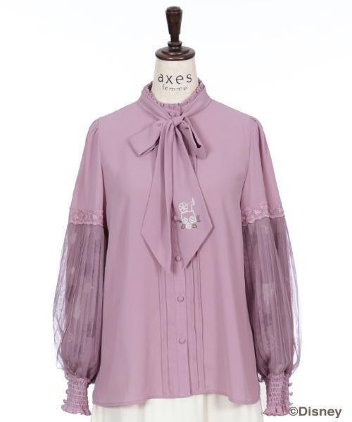 アクシーズファム ディズニー 眠れる森の美女 ブラウス M リボン付き レース チュール切り替え ピンタック