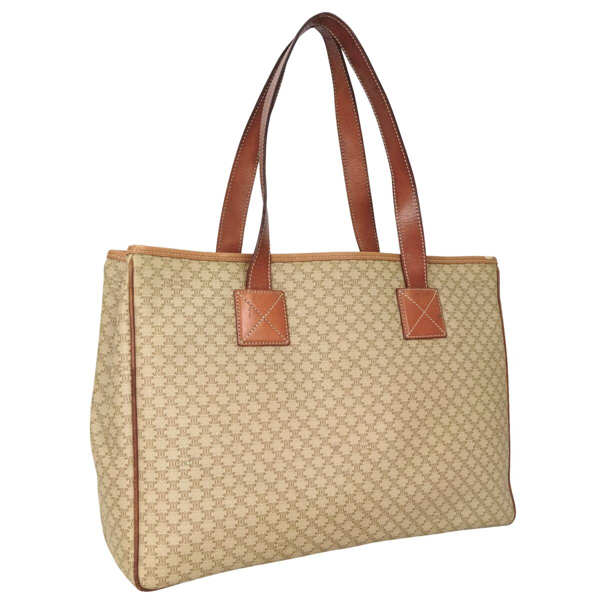 本物■セリーヌ■マカダム ベージュ PVC キャンバス ショルダートートバッグ ハンドバッグ /921105