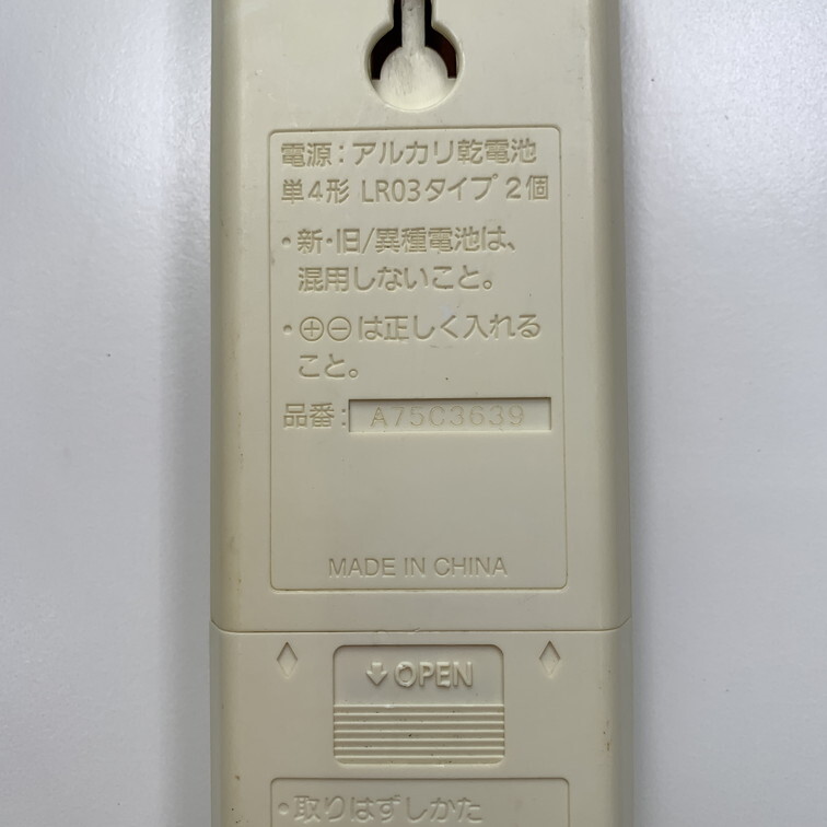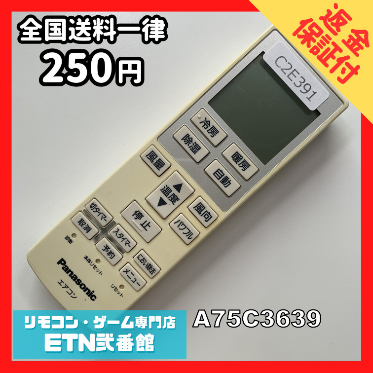 C2E391 【送料250円】エアコン リモコン / Panasonic パナソニック A75C3639 冷房 暖房 動作確認済み★即発送★