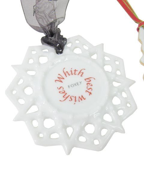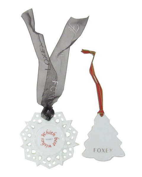 フォクシーの可愛いノベルティー。スノーフレークやつりーをモチーフにした陶器製のオーナメント。お部屋やツリーに飾れば、気分が上がります。 |