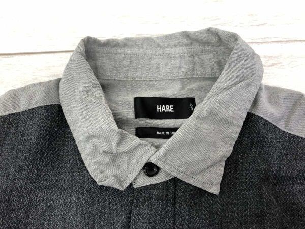 ハレ HARE セレショ系 アーバンストリート 素材切替 胸ポケット 長袖シャツ 日本製 メンズ ポリエステル100% 綿100% L グレー系です。