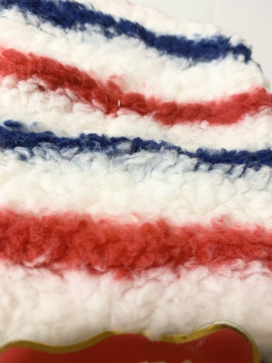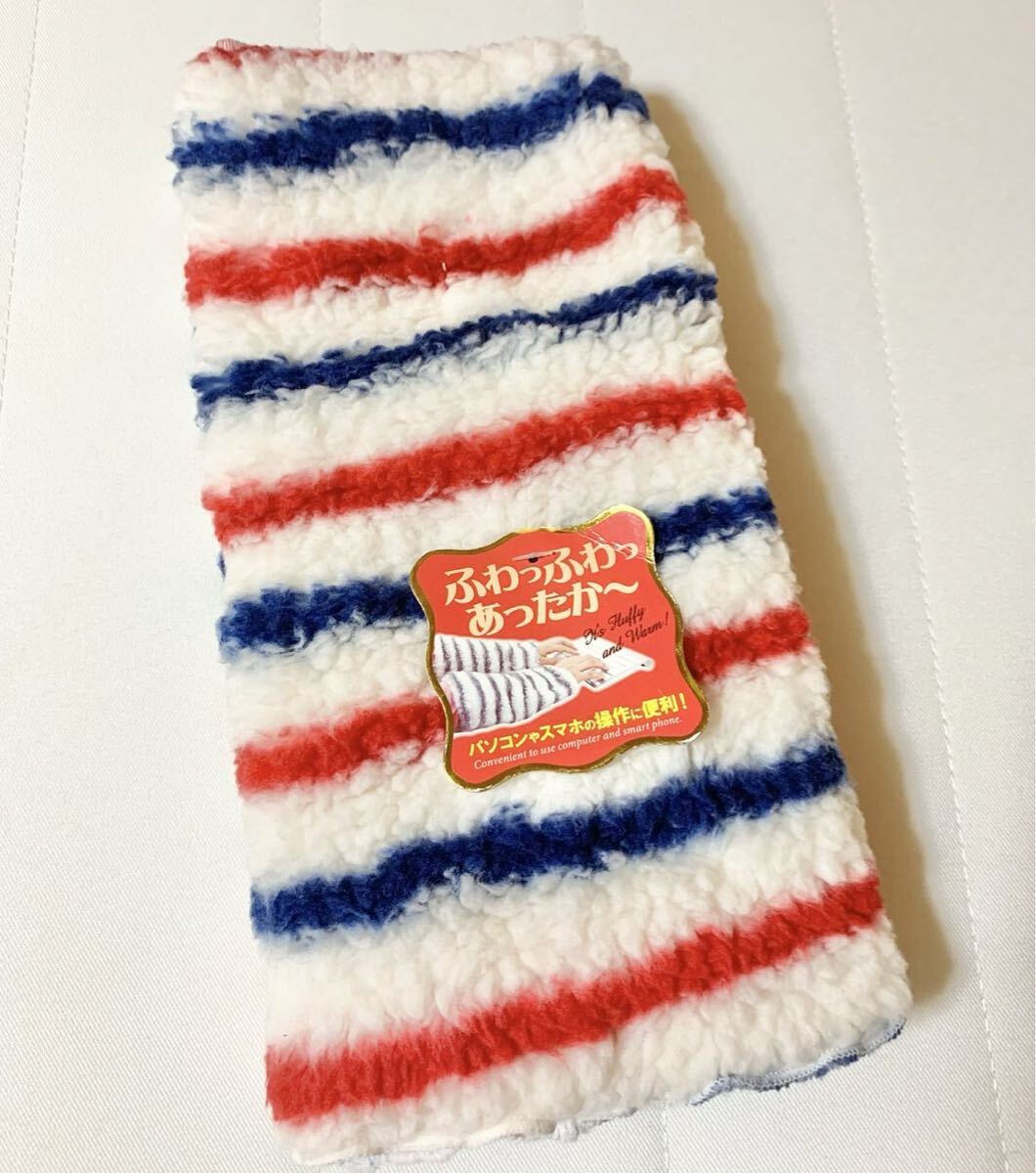 赤白青のトリコロールカラーのボーダーがおしゃれな、モコモコ手首・アームウォーマー。