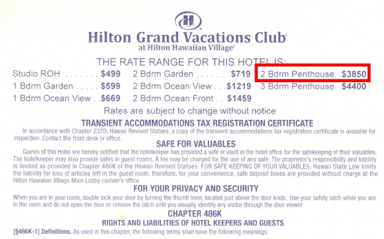6月18日~6月27日(9泊) ペントハウス/ラグーンタワー/オーシャンビュー/HGVC/ヒルトンハワイアンビレッジ/コンドミニアムスイート
