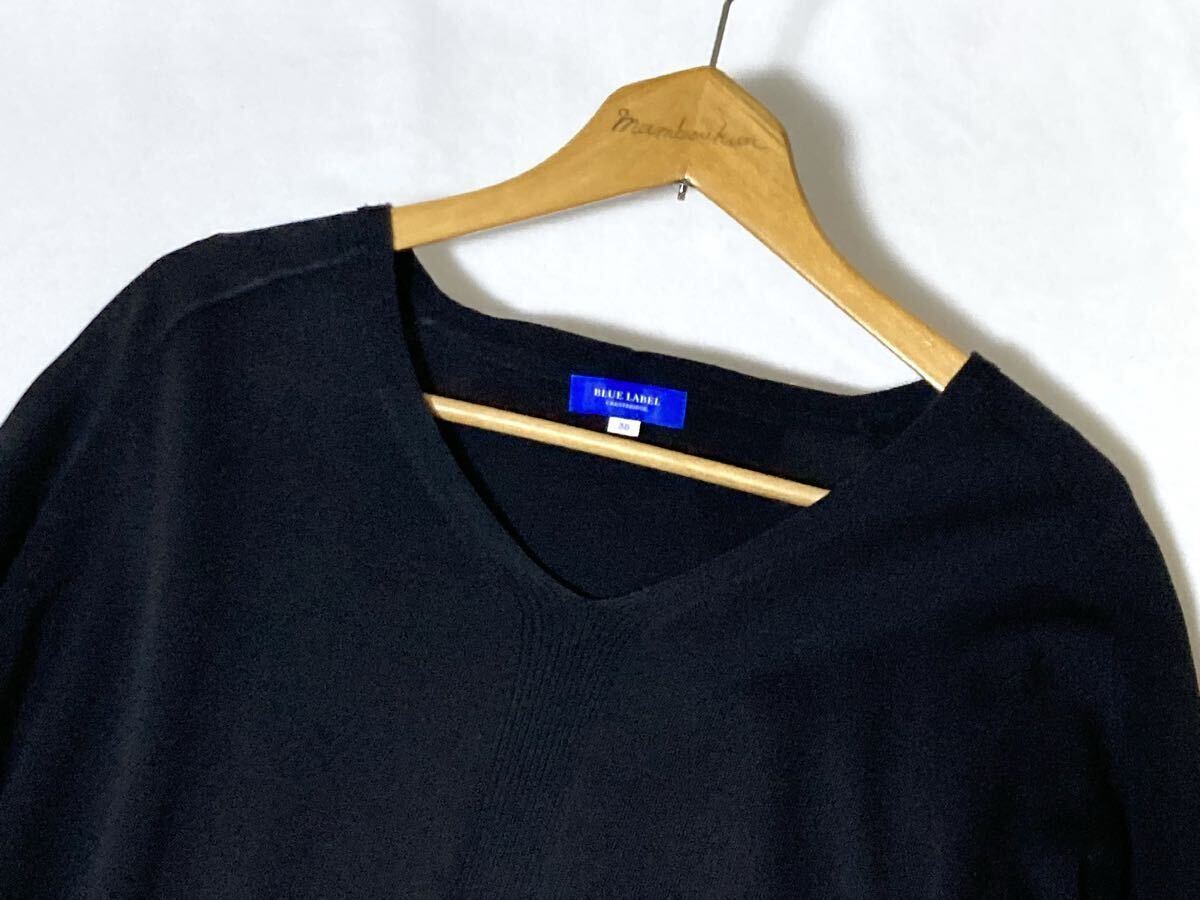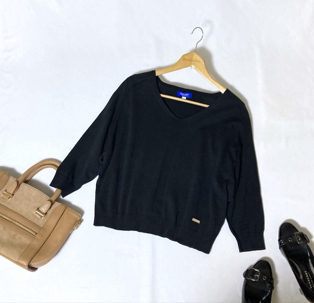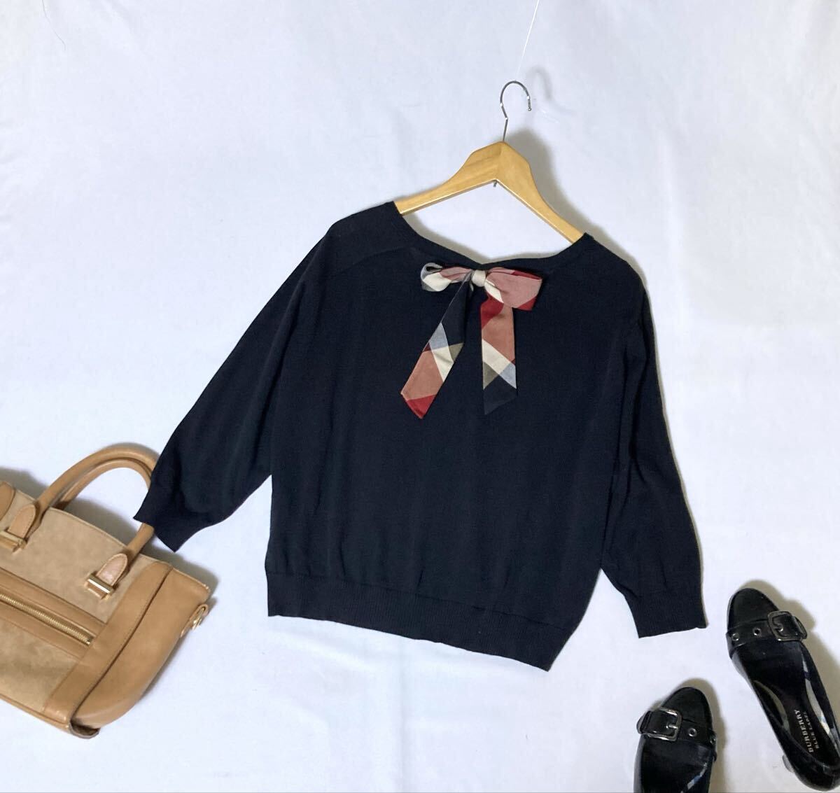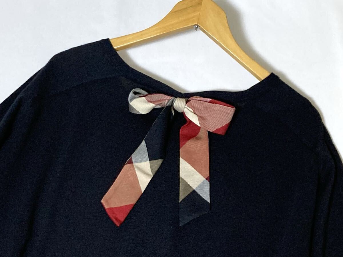 美品 ブルーレーベルクレストブリッジ 後ろチェックのおリボンが可愛いニット 38 送料230円♪