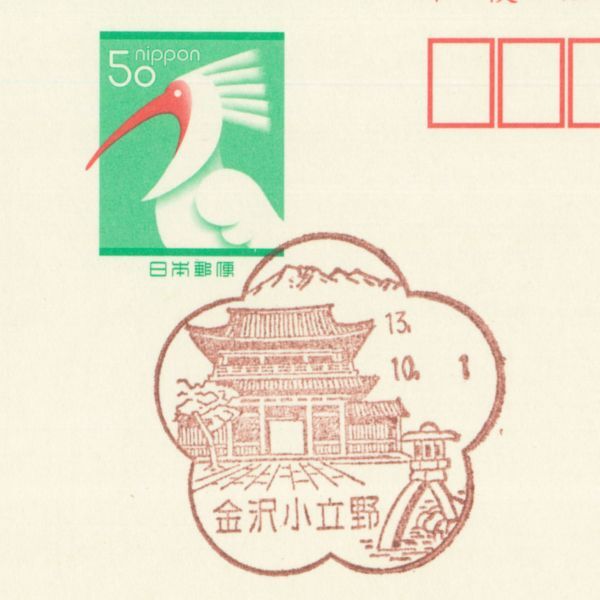 風景印☆初日☆石川・金沢小立野・H13.10.1・変形枠
