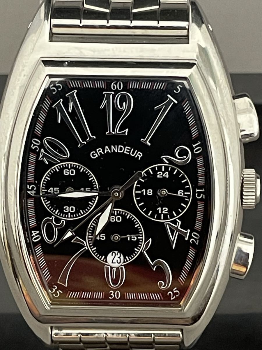 GRANDEUR クォーツ クロノグラフメンズ腕時計です。時計動いていますが詳しく動作確認してないためジャンク品扱いでお願いします。ノウクレームノウリターンでお願いします。