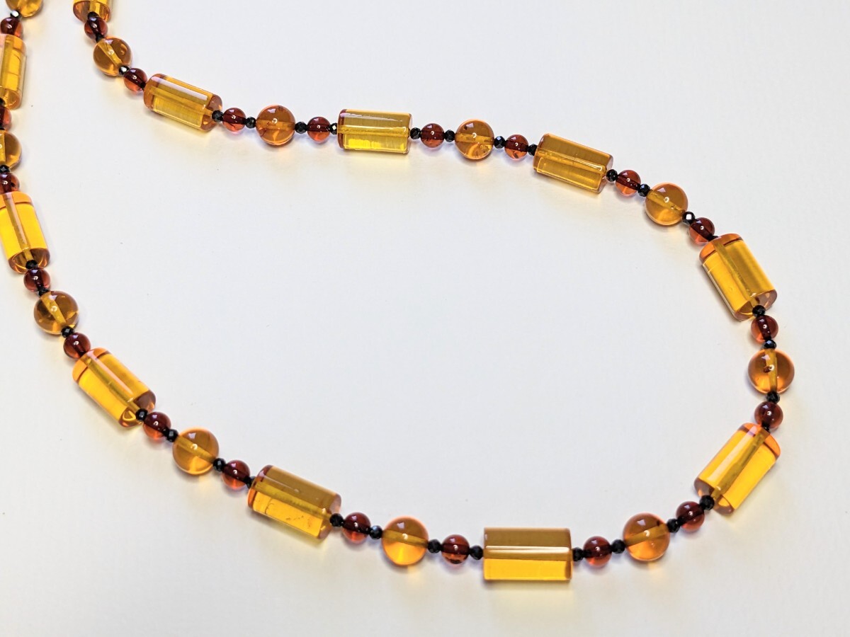 【数量限定販売になります】 3色の天然琥珀を使ったロング・ネックレスです。 琥珀は、模造品や再生琥珀等の天然琥珀ではない琥珀が多く出回っていますが、鑑別機関の最高峰 「中央宝石研究所」 で鑑別をして、間違いない商品を供給してくれる、信用できるサプライヤーから仕入れをしています。 近年、産出量が激減し、値段が高騰しております。また産出国の輸出規制等によって、日本への輸入量も激減しています。 使用石 : 天然琥珀 長さ : 約60cm 最大幅 : 約10mm 留金 : 引き輪式 シルバー925(ロジューム・コーティング) コーティングステンレスワイヤー使用 天然琥珀特有のグリッターと呼ばれるクラックやインクルージョンがあります。 グリッターは、個体差があります。 | |||