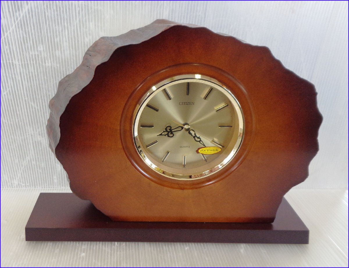 Bana8◆未使用◆CITIZEN/シチズン 年輪 RQ606 濃茶ボカシ木地仕上 (金色) カエデ材 置時計 インテリア
