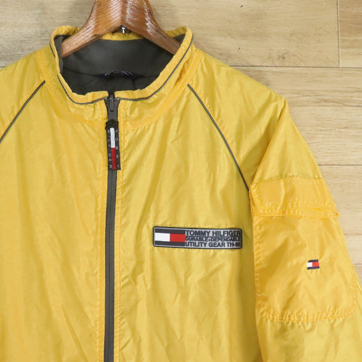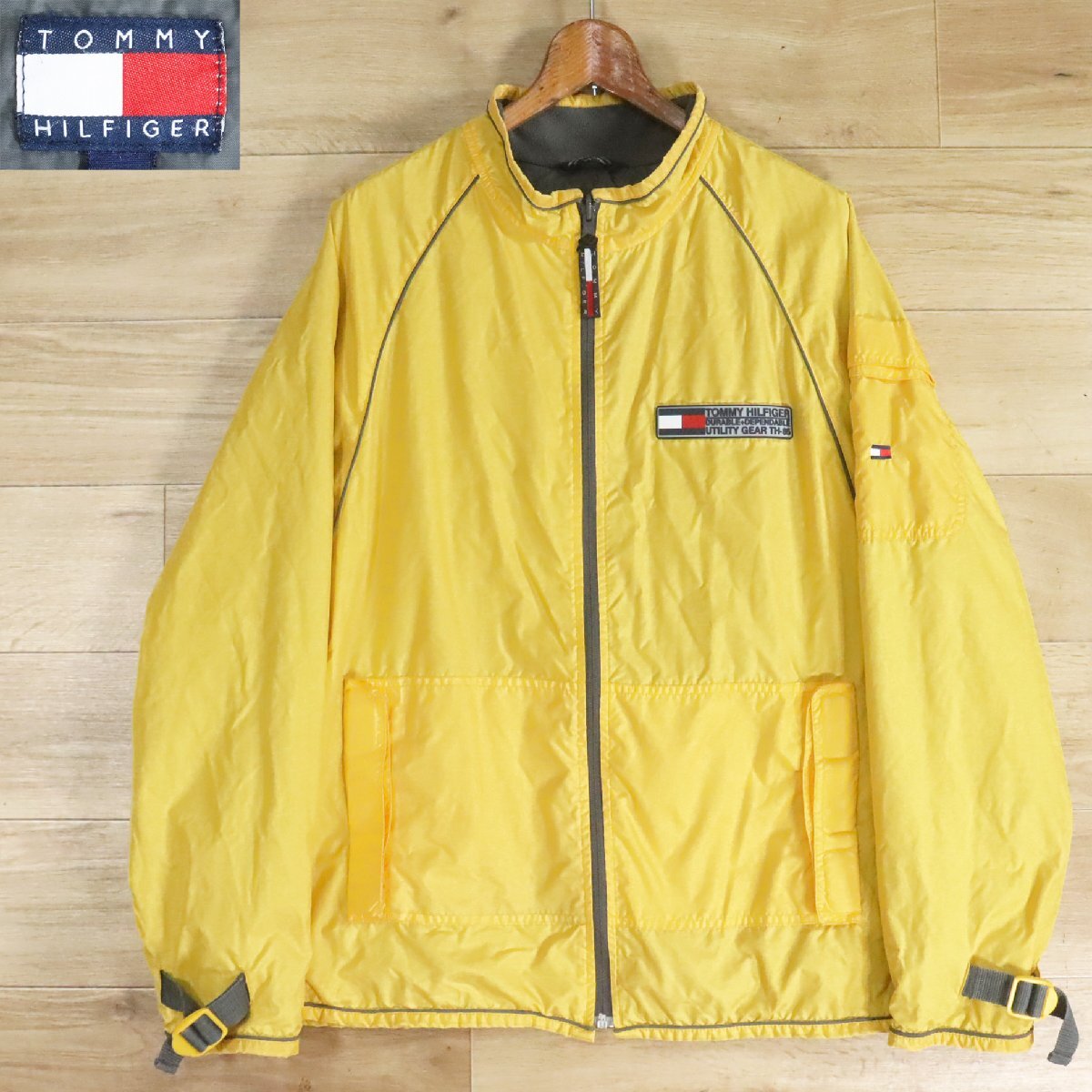 E7Y/Y8.11-3 アメリカ古着 TOMMY HILFIGER トミーヒルフィガー ナイロンジャケット ジップアップジャケット 裏フリース XLサイズ