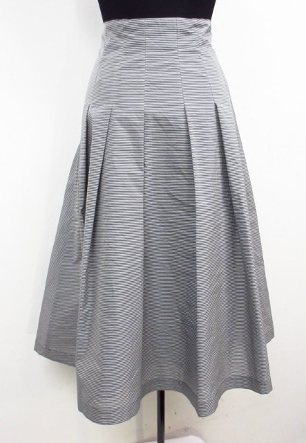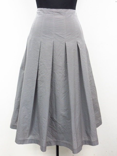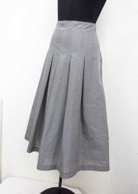 美品 L'EQUIPE レキップ ロングスカート 黒×白 細ボーダー柄 片ひだプリーツ 裏地あり (株)ビギ