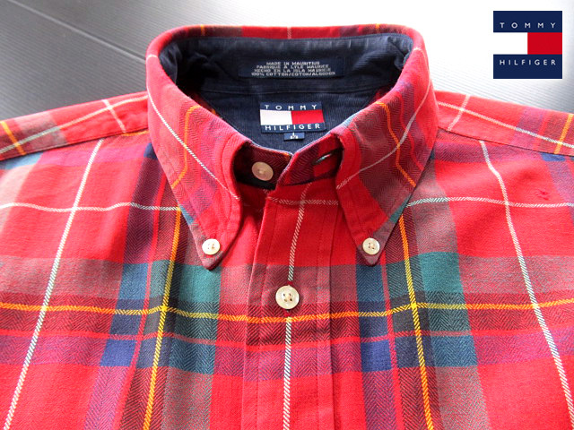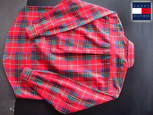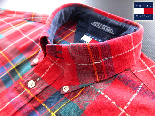 ★100円スタート!トミーヒルフィガー TOMMY HILFIGER ボタンダウンシャツ 長袖 Lサイズ 希少品 ハンサムチェック レッド×グリーン