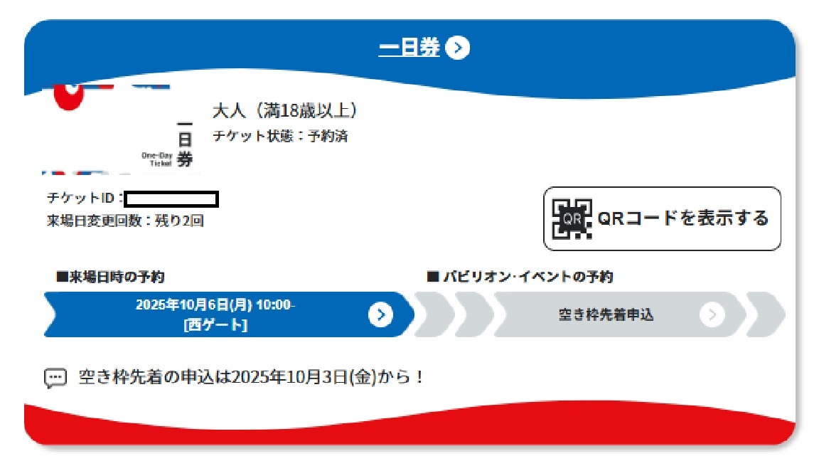 ご自身の万博IDでログインし、チケットをお受け取りください。