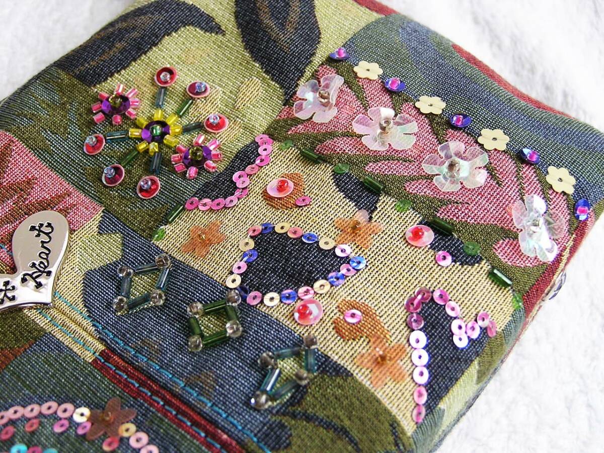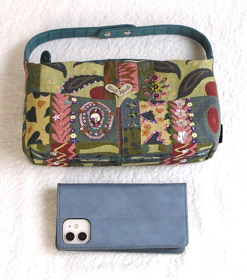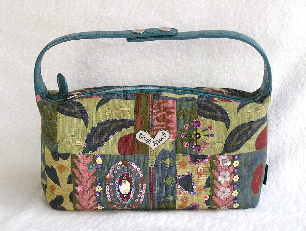 シンクビー/Think Bee/ミニハンドバッグ/ゴブラン織り スパンコール使い/バッグインバッグにも/中古/未使用ポーチおまけ/お得な送料無料