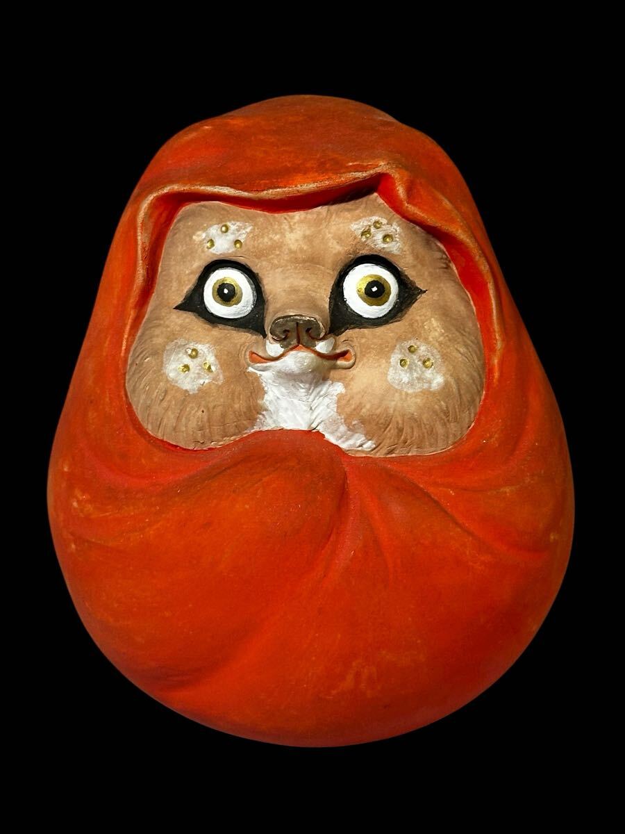【商品の説明】郷土人形 タヌキ達磨 だるま たぬき 土人形 陶磁器 焼き物 在銘 梵字刻 骨董 雑貨 縁起物 仏教美術