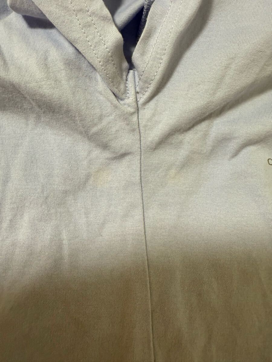 数回着用のみですが、水色のカットソー右脇に色抜けがあります。