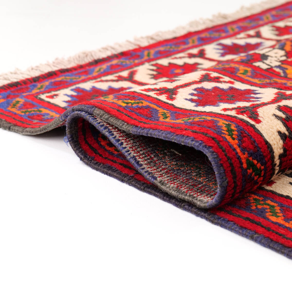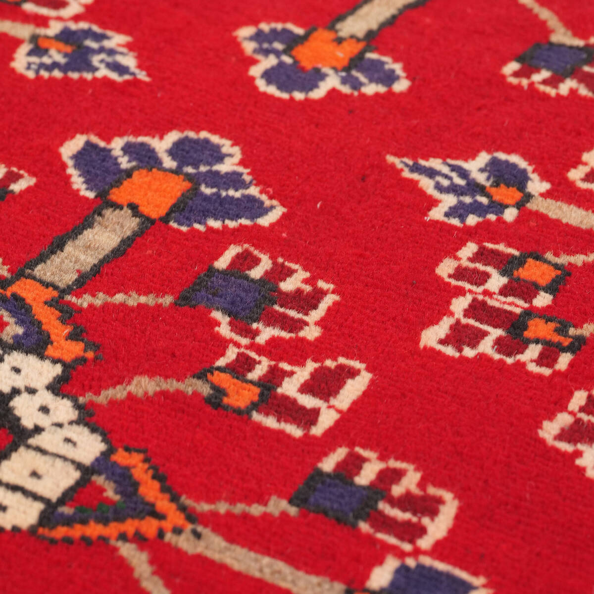 鮮やかな赤を基調に、青や白、黄色がバランス良く組み合わされています。経年による自然な色合いの落ち着きが加わり、クラシカルで柔らかな雰囲気を漂わせています。