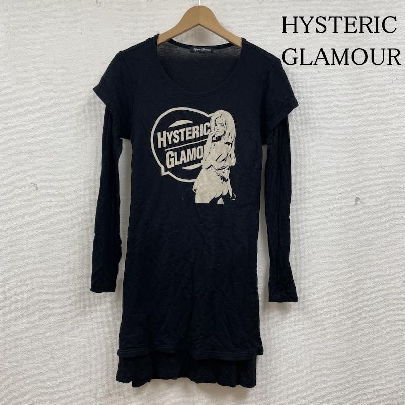 ヒステリックグラマー ワンピース カットソー 長袖 レイヤード リネン混 ヒスガール ロゴ FREE