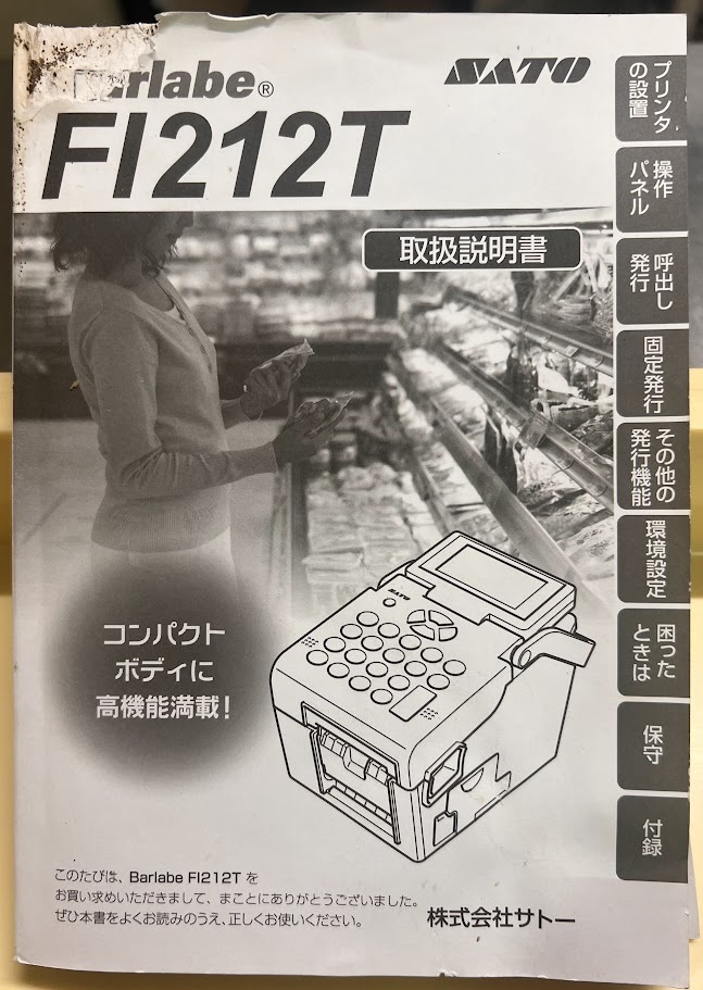 中古品 サトーラベルプリンター FI212T Barlabe バーラベ ラベル発行/ラベル印刷 中古品 経年使用中 稼働確認済み