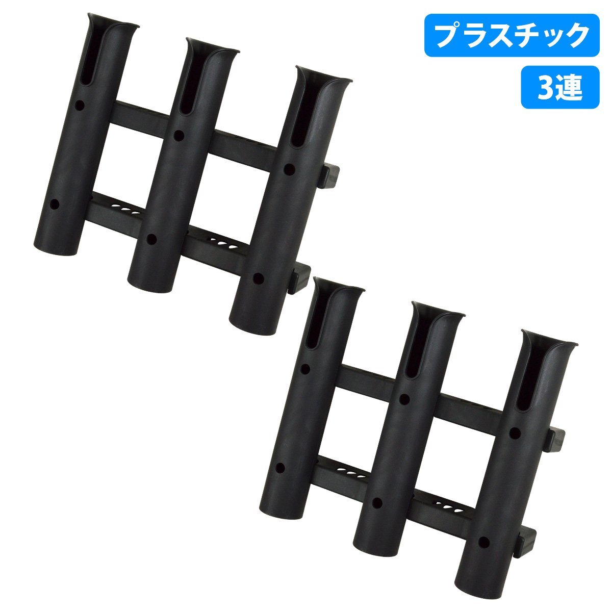 [3連 2個セット] ロッド ホルダー 竿 立て 置き 入れ 釣り フィッシング スタンド ネジ付 固定 船 漁船 ボート 黒 ブラック