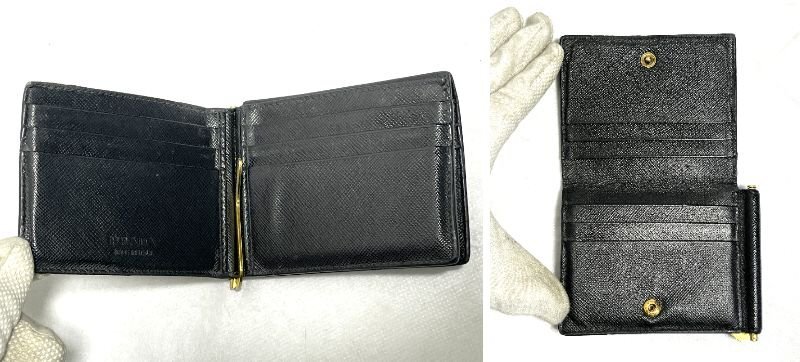▽PRADA プラダ カードスロット12枚 マネークリップ付き 財布 中古・使用感あり▽013074