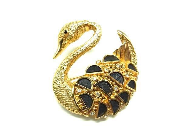 ■極美品■ ORENA PARIS オレナ パリ スワン 白鳥 ラインストーン ピンブローチ ピンバッジ アクセサリー ゴールド系 DH0511
