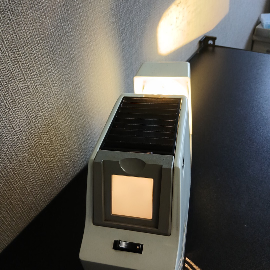 昭和期に家庭や教育現場で広く使われたモデルで、35mmスライドを投影することができます。