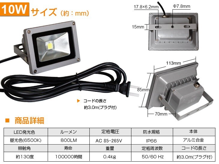 LED採用の省エネ投光器ライトです。10Wと省電力で、従来の100W相当の明るさです!