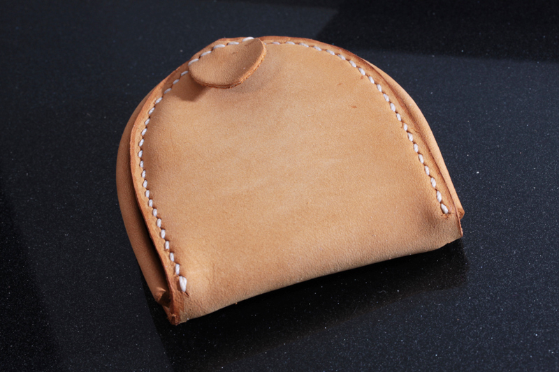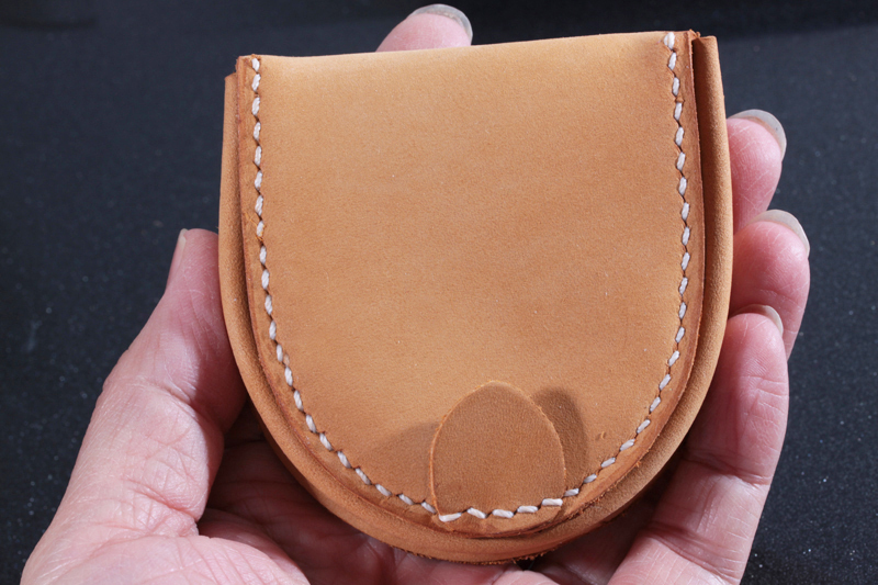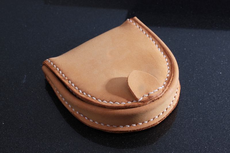 新商品レザー牛革 高品質馬蹄半円型小銭入れ★手縫い手作りベージュ