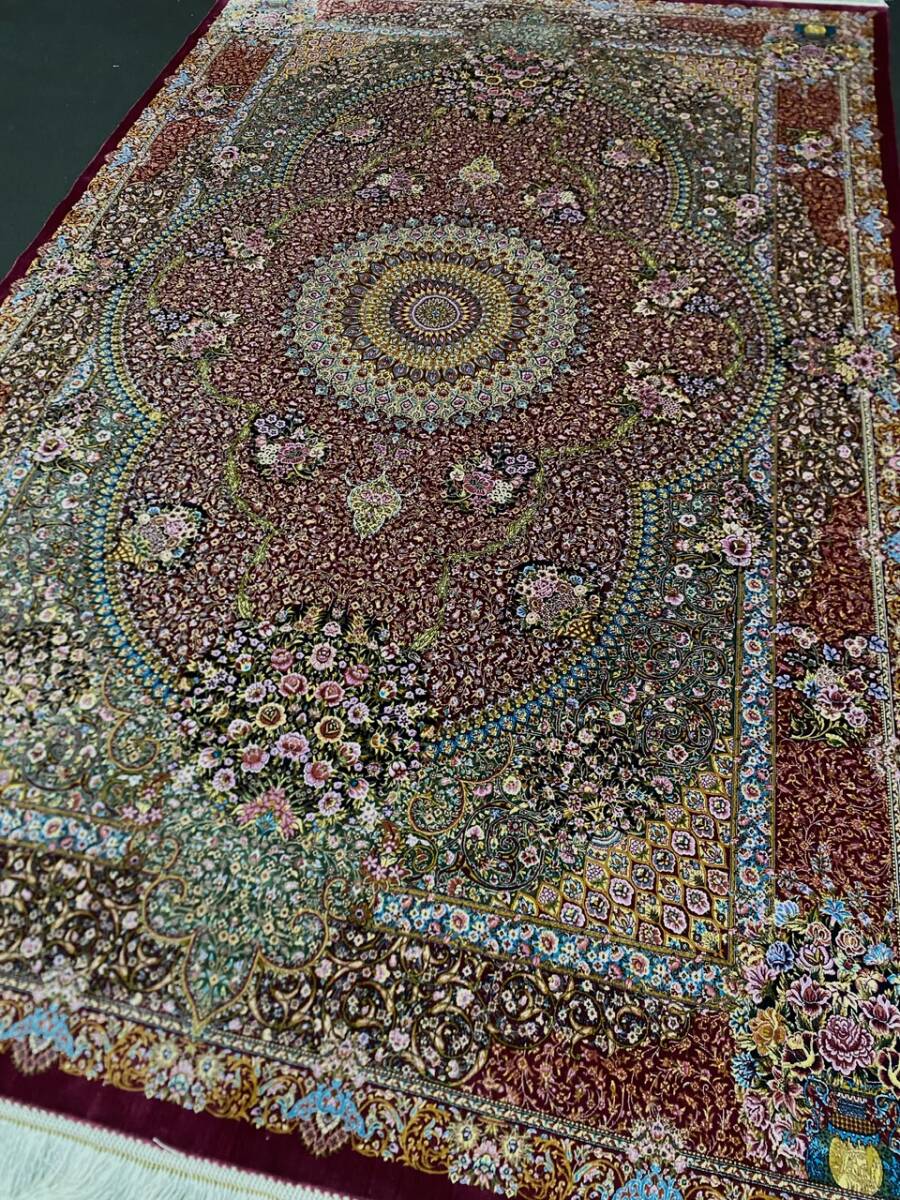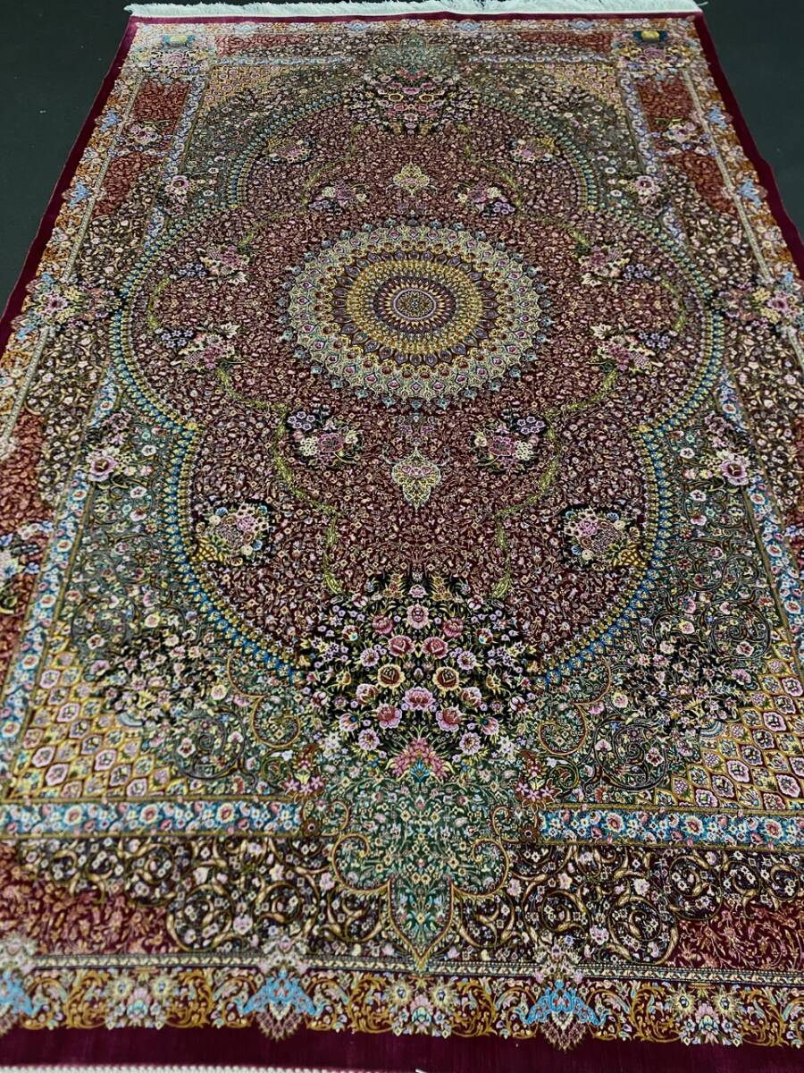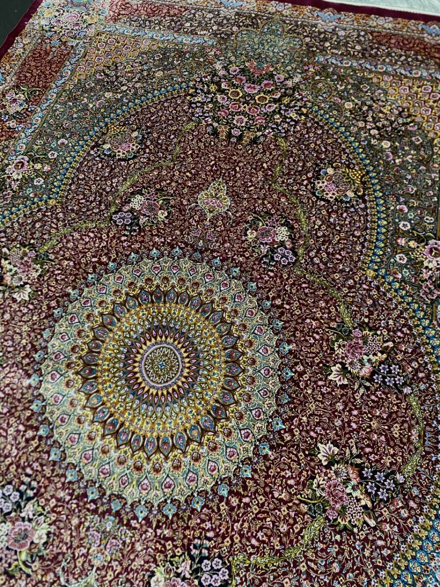 クム絨毯の歴史は1930年頃からと浅く、最初はウール絨毯を、後にシルク絨毯を織るようになりました。絹の産地としても有名なクムで、現在作られるほとんどの絨毯は100%シルク製です。