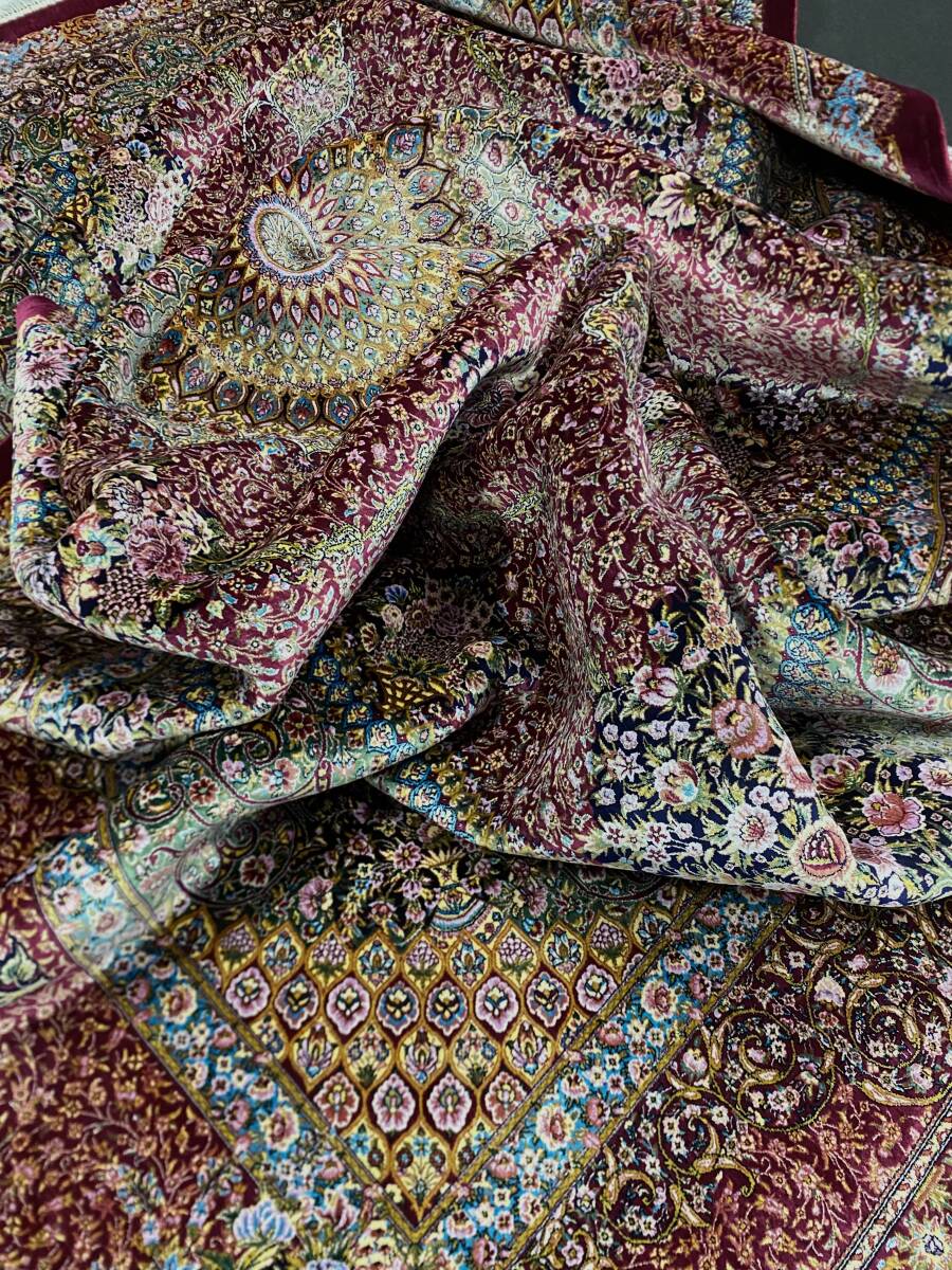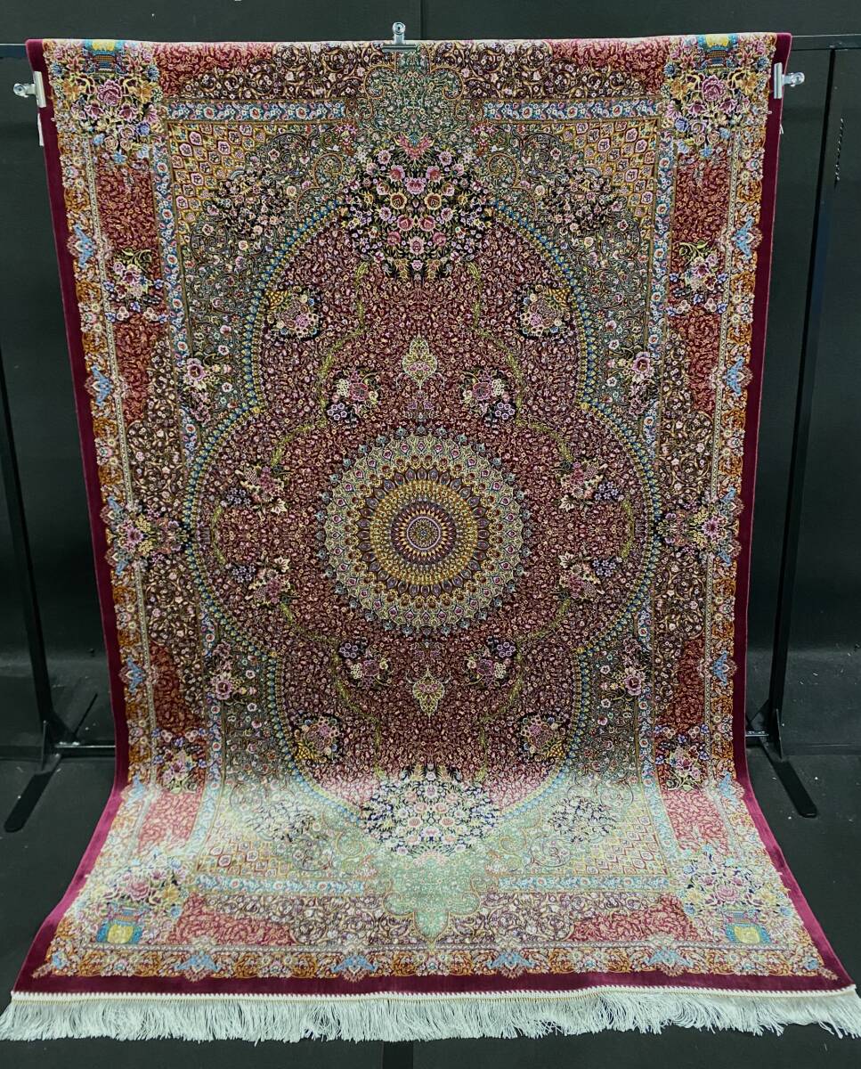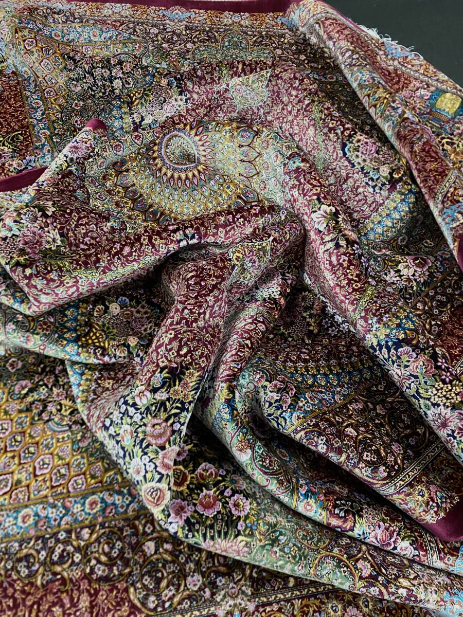 クム絨毯の歴史は1930年頃からと浅く、最初はウール絨毯を、後にシルク絨毯を織るようになりました。絹の産地としても有名なクムで、現在作られるほとんどの絨毯は100%シルク製です。