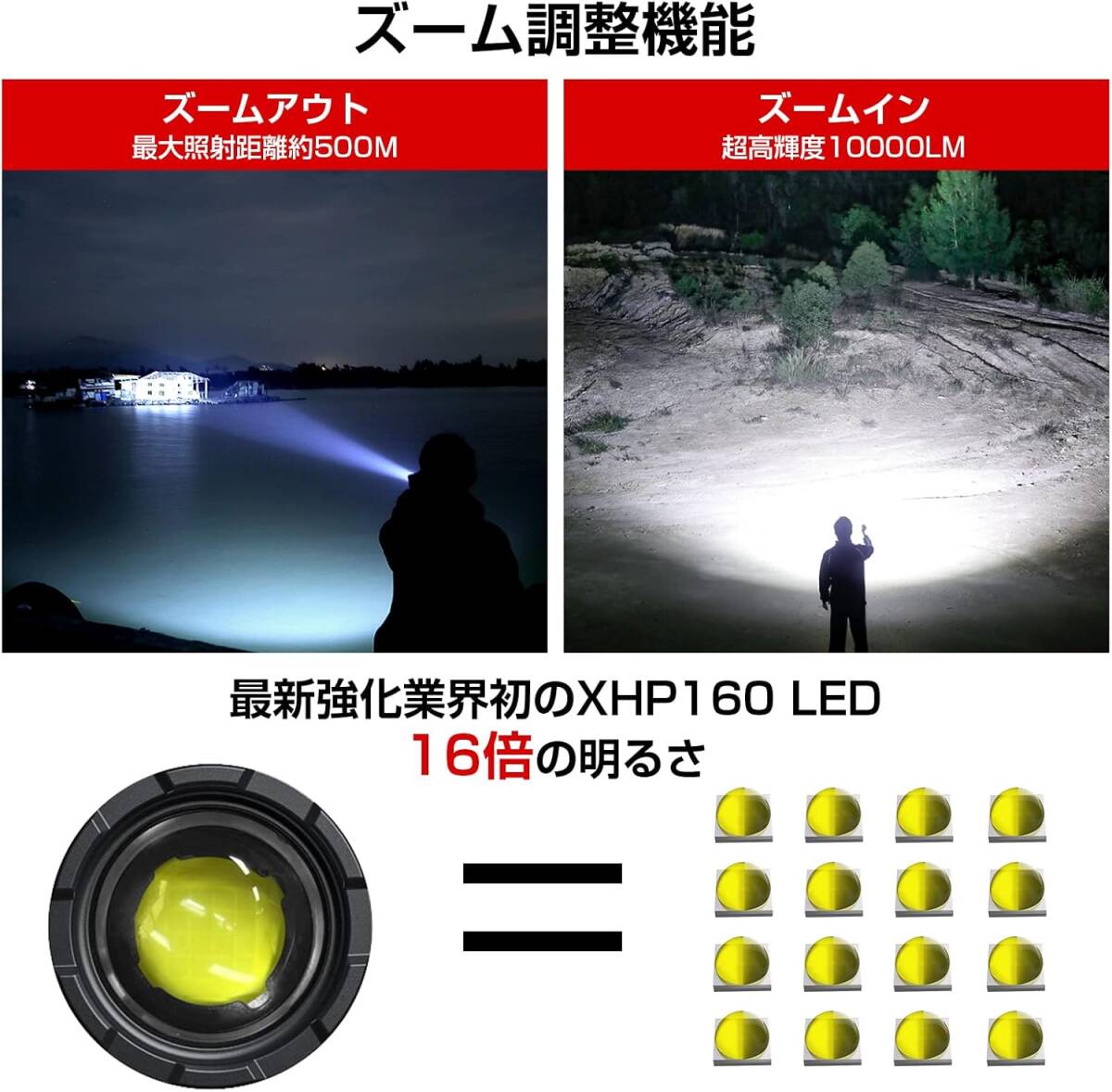 懐中電灯 強力 防災士監修 超高輝度 XHP160 5000mAh 26650付 軍用 最強 Type-C充電式 単4電池対応 ハンディライト 防災 停電 地震